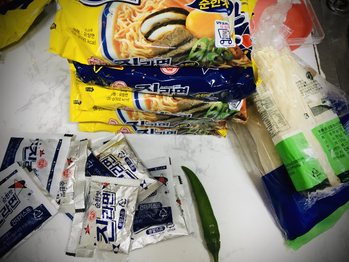 - 라면 (스낵면, 진라면처럼 개성이 강하지 않은 걸로)