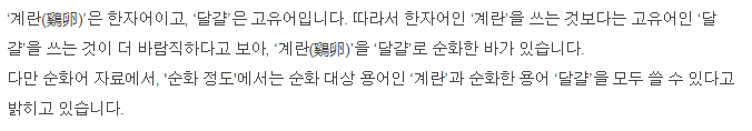 결론은 둘 다 사용 가능하지만 순우리말인 달걀을 사용하자 입니다.