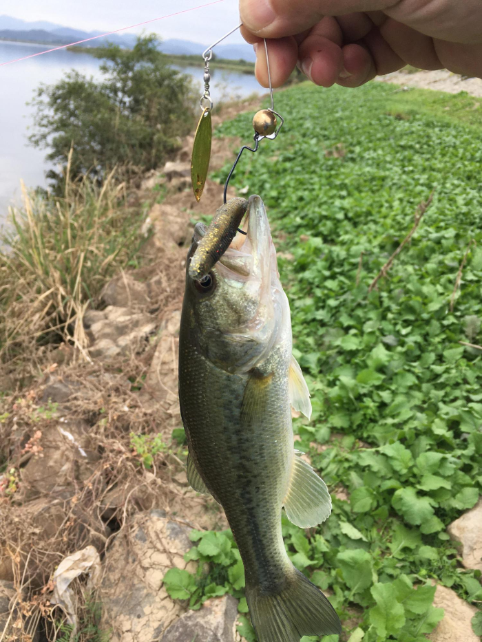 아까 공략했던 나무가지들을 이번에는 스피너베이트로 다시 공략해 봤습니다.