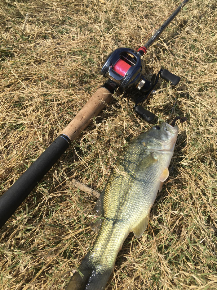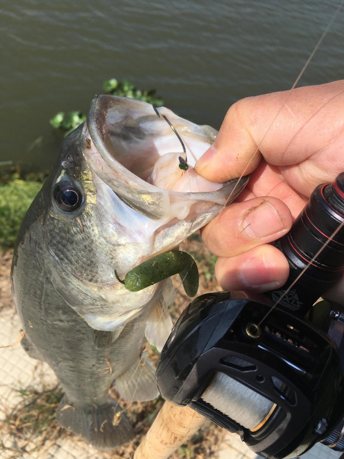 예전에 왔을 때 필드 환경을 떠올려 멀리 수초가 있는 곳 주변으로 프리리그를 던져 보았습니다.