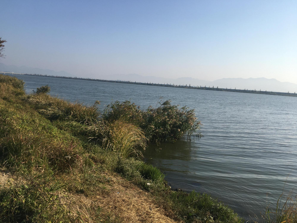 햇살이 따뜻하게 비추는 둔치도의 동쪽 연안을 따라