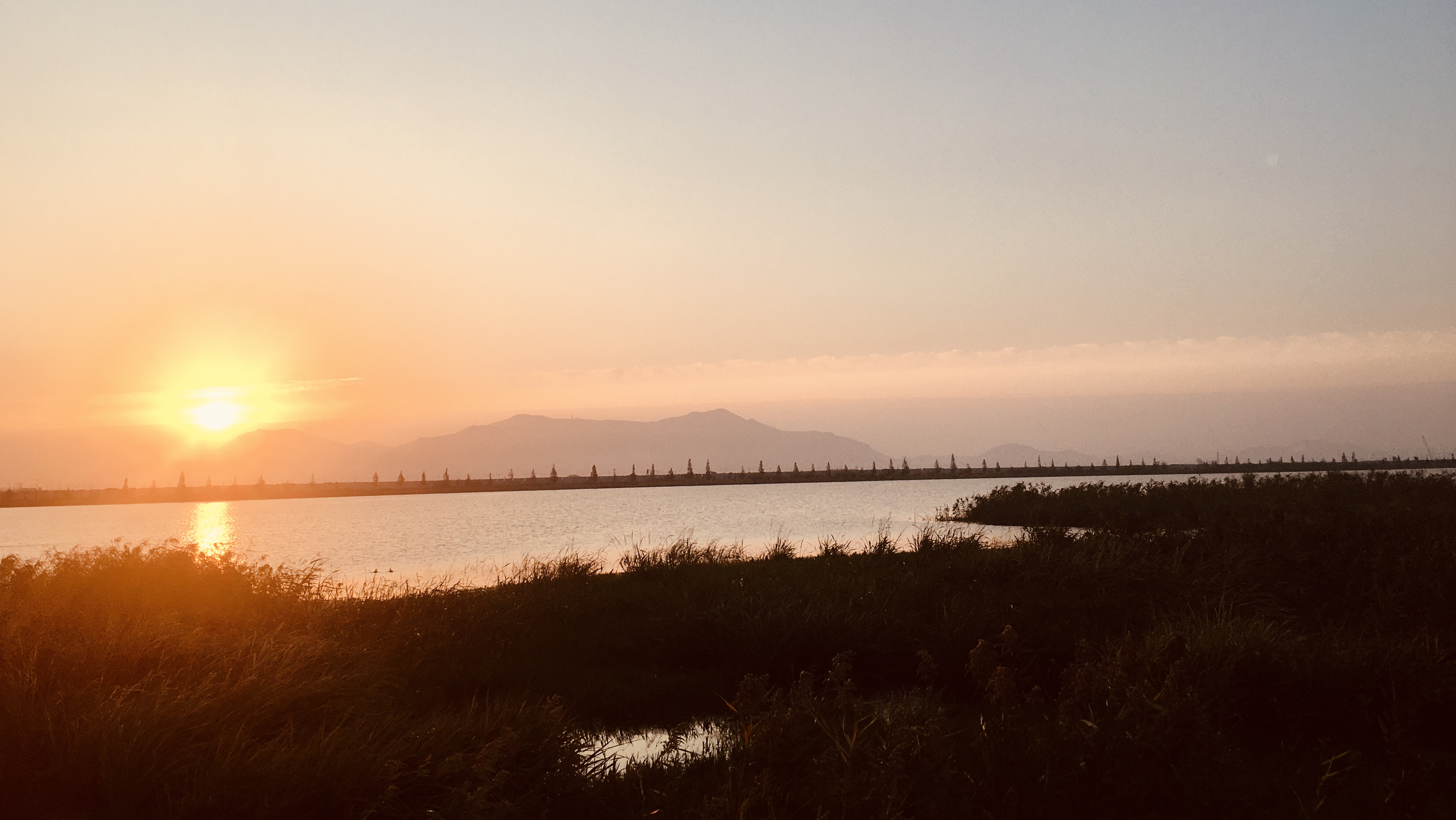아침 일찍 일어나 둔치도 서낙동강 합수부 쪽에 도착하니 해가 떠오르고 있었습니다.