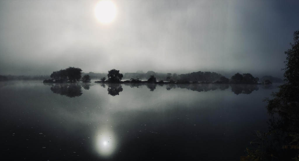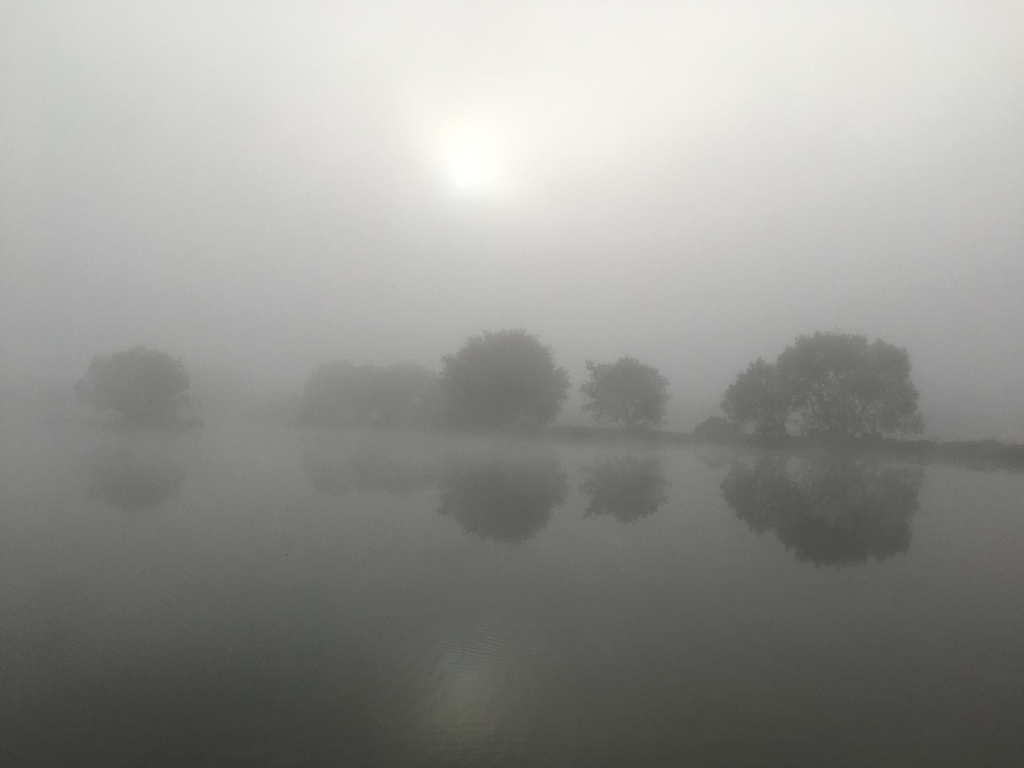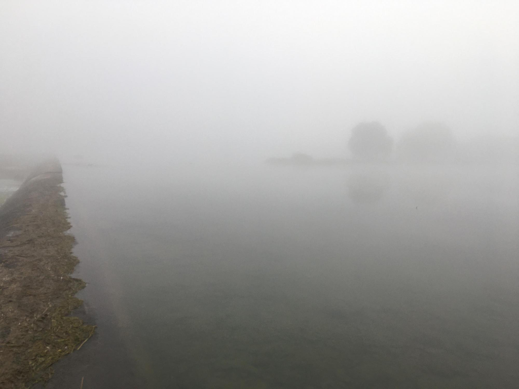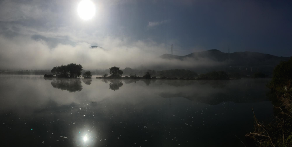 안개가 걷히기 시작하면서 해가 수면을 비추고 온도가 순식간에 올라가는데요.