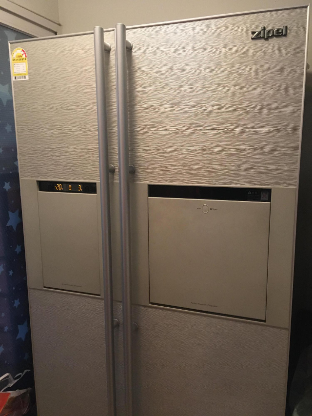 조립을 마치고 선반을 끼워넣고, 전원을 넣었습니다.