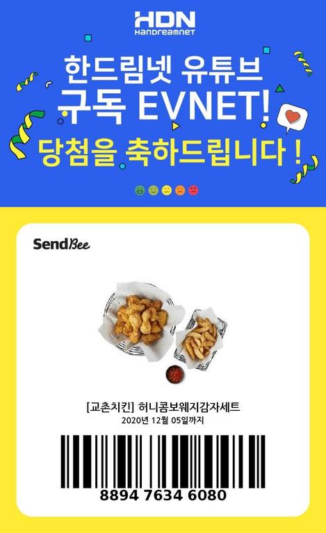당당히 교촌치킨 "허니콤보웨지감자세트" 당첨되었습니다.