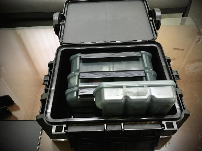 나머지 하나에는 웜을 종류별로 수납해서 들고 다니고 있습니다.