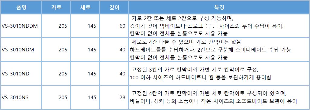 맨 위 규격에도 적혀 있지만, 가로,세로 폭은 모두 동일하고 깊이만 다릅니다.