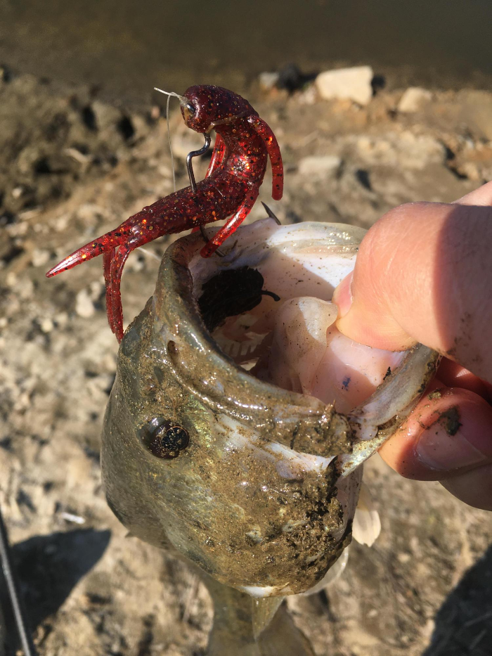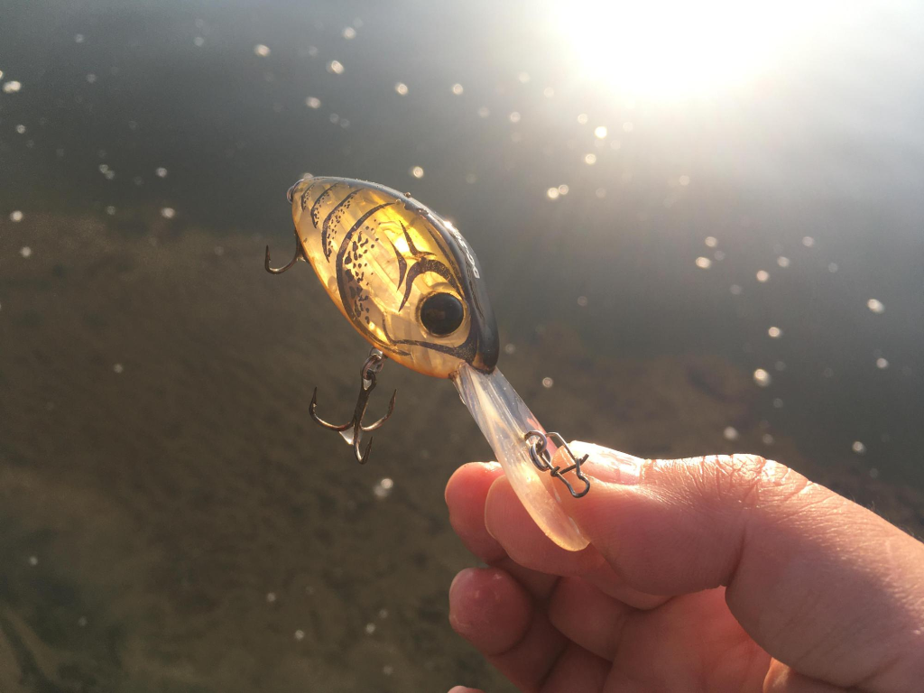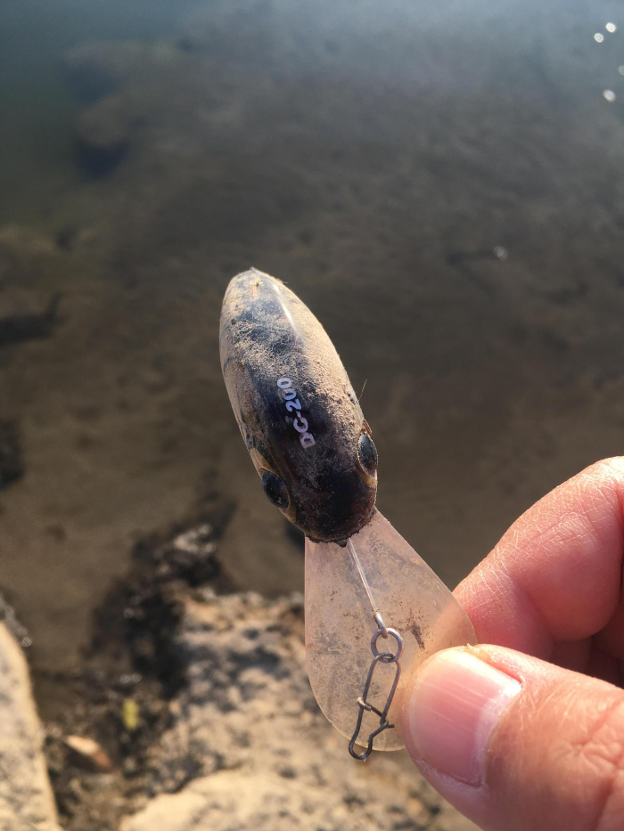 주변을 두리번 거리다가 나무가지에 걸린 크랭크베이트 하나를 건져보았습니다.