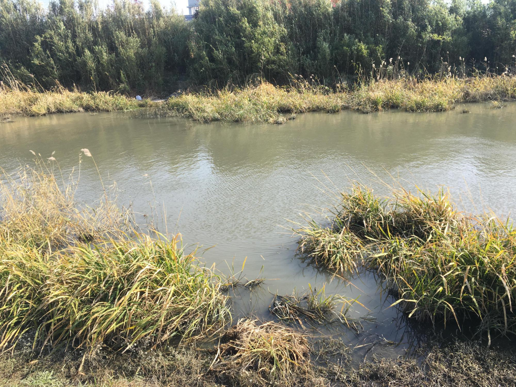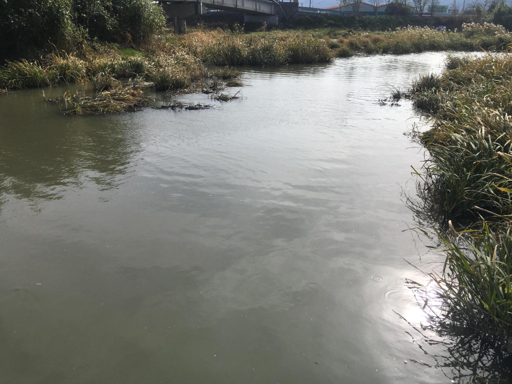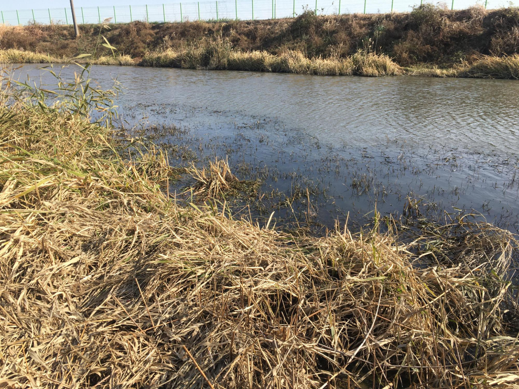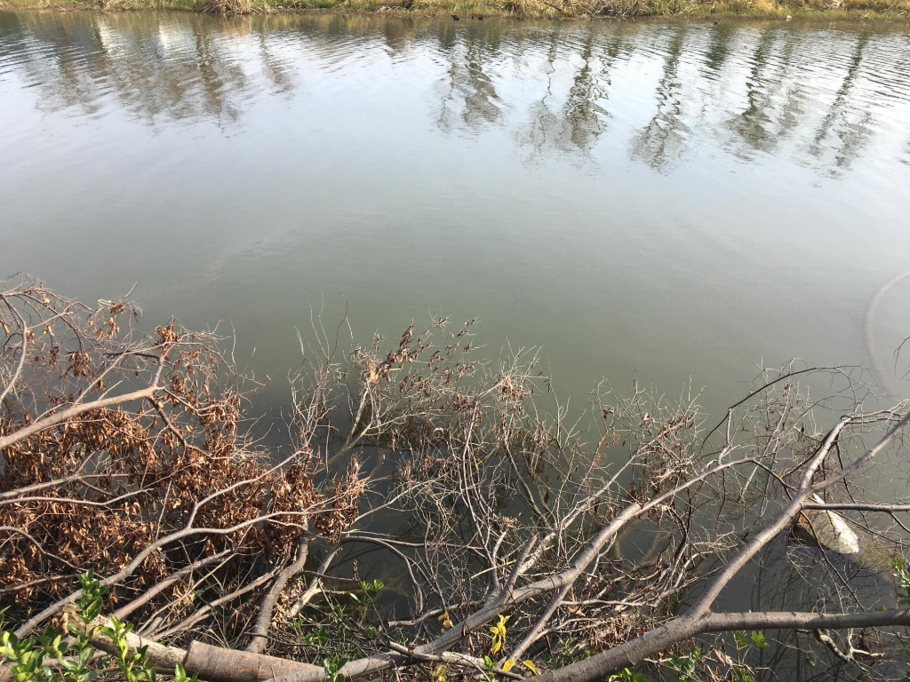 수면의 라인이 천천히 수초쪽으로 흘러갑니다.