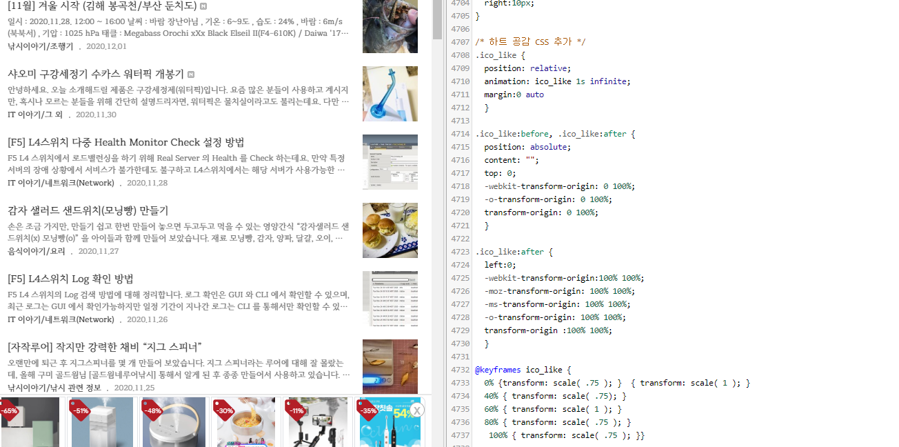 티스토리 글 하단에 있는 하트모양 공감버튼에 콩닥콩닥 뛰는 움직임을 주는 css 입니다.