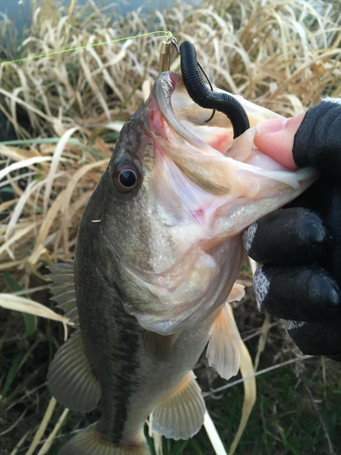 3인치 팰릿 프리리그로 발앞 수초 언저리를 탐색하며 오는데,