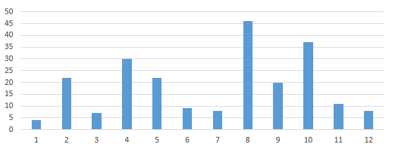 월별 조과를 보면 8월에 가장 많은 마릿수를 했고,