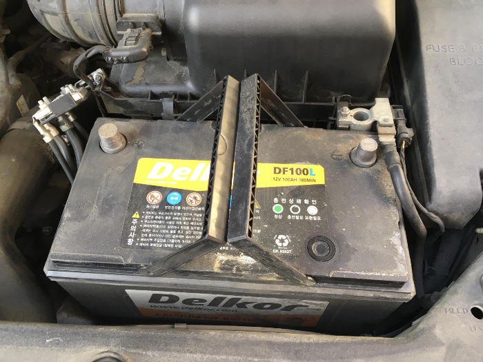 1. 차량 본넷을 열어 기존 밧데리를 째려 봅니다.