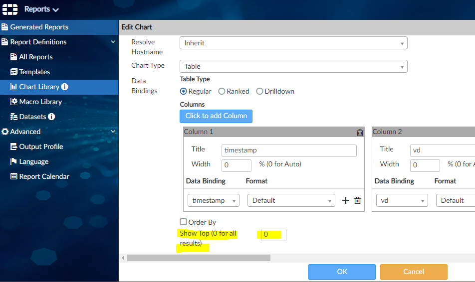 ii. Chart Library > Edit Chart > 제일하단 Show Top (0 for all results)
