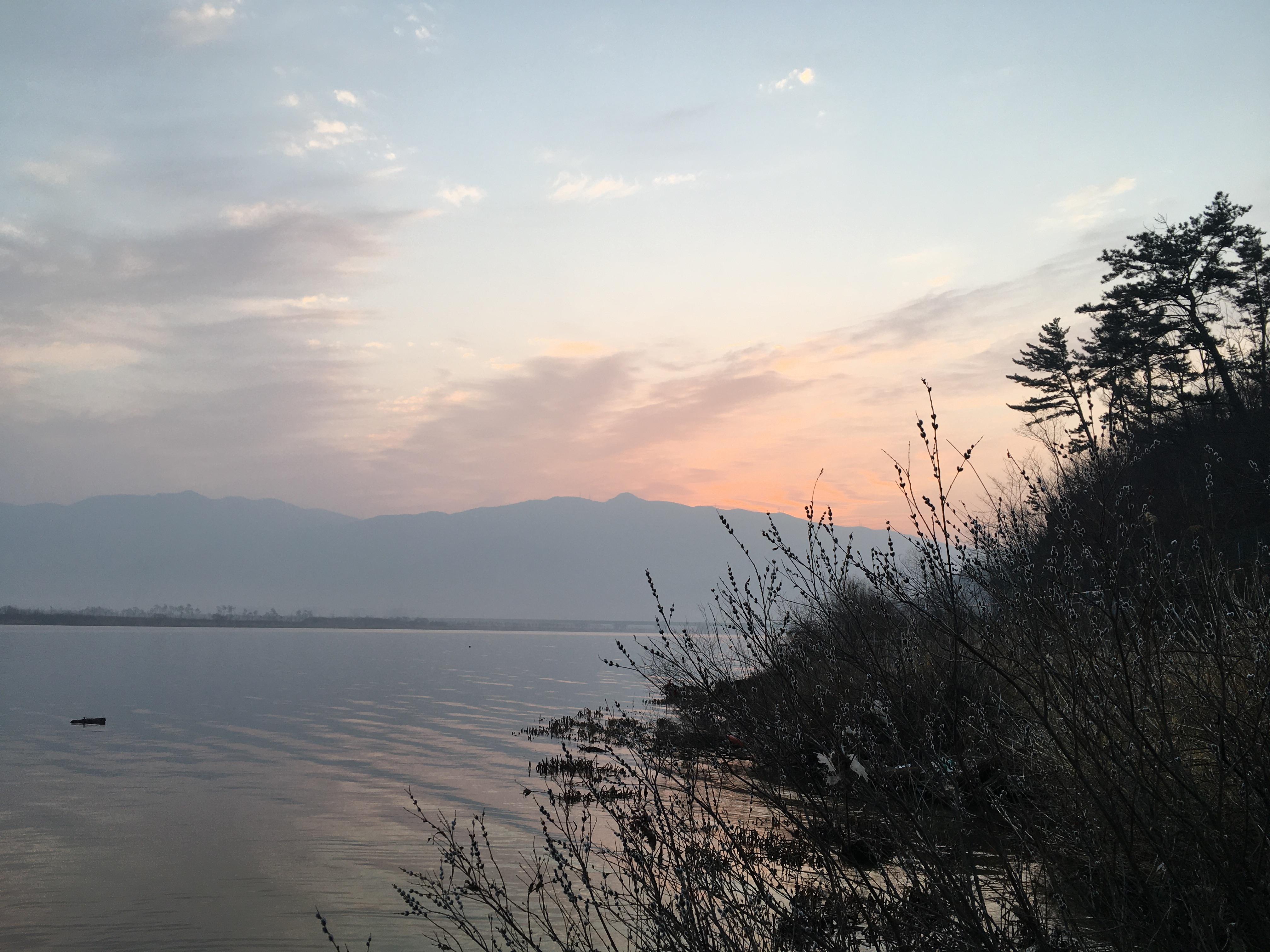 7시반쯤 되자 동쪽 하늘에 해가 떠오릅니다.