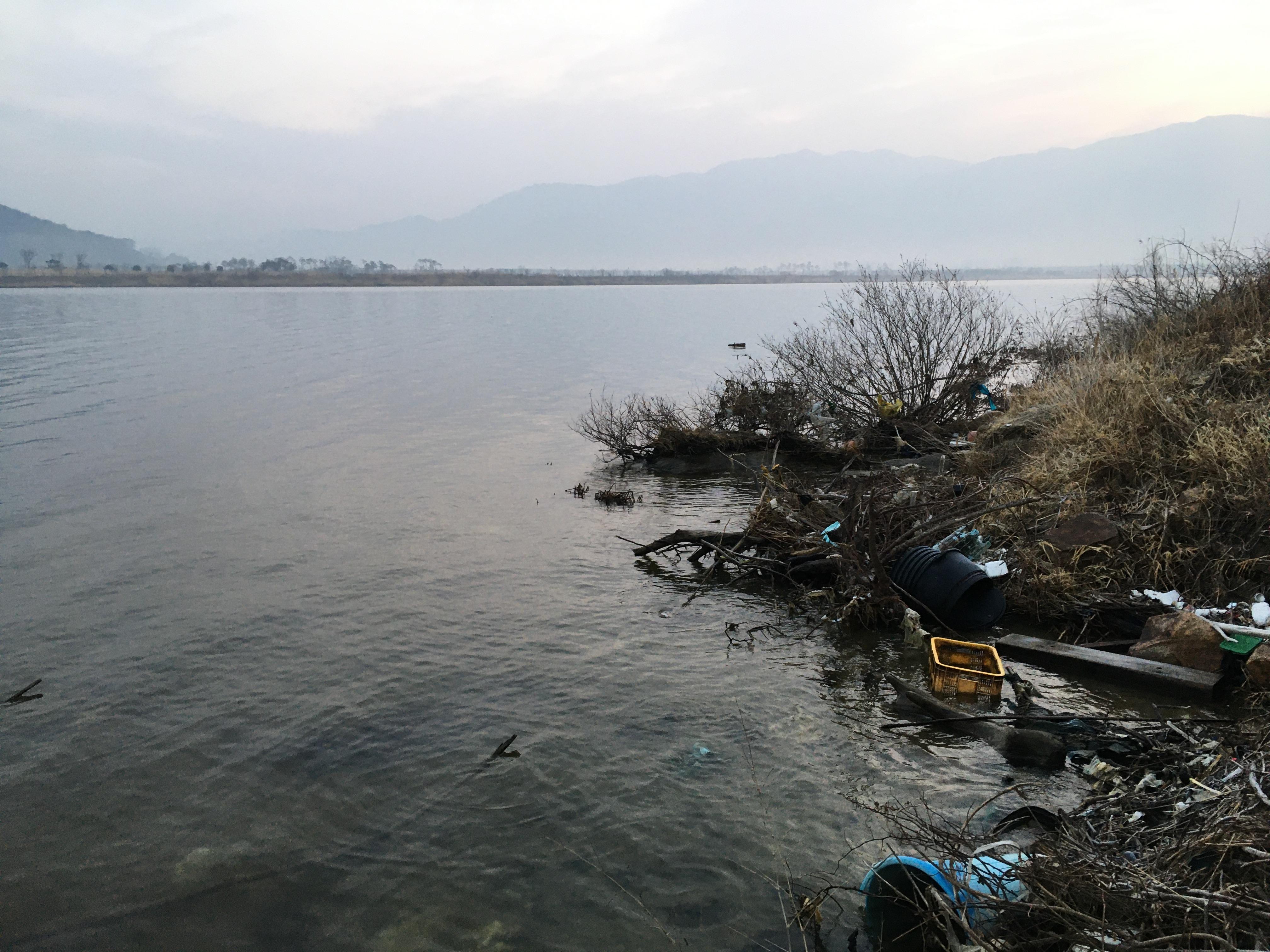 온갖 쓰레기가 많이 떠밀려와 있습니다.