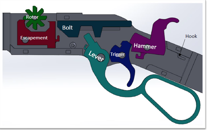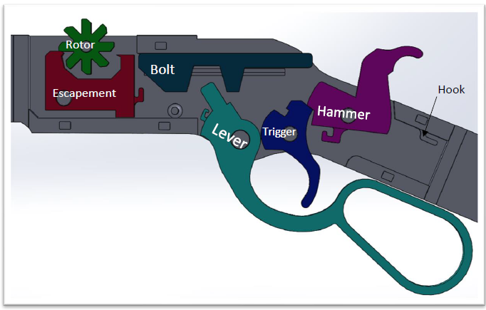 3. 내부 부품(Rotor, Escapement, Bolt, Trigger, Hammer, Lever)
