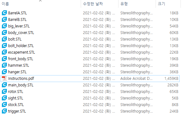 파일을 다운받아 보면 아래와 같이 각 부속품들의 stl 파일과,