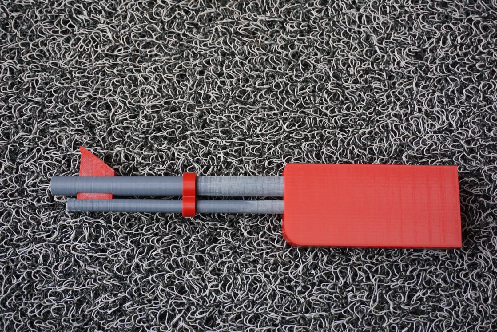 세 번째, 방아쇠(Trigger) 와 Main Body 뒤 Hook 에 1개의 고무줄을 2겹으로 연결