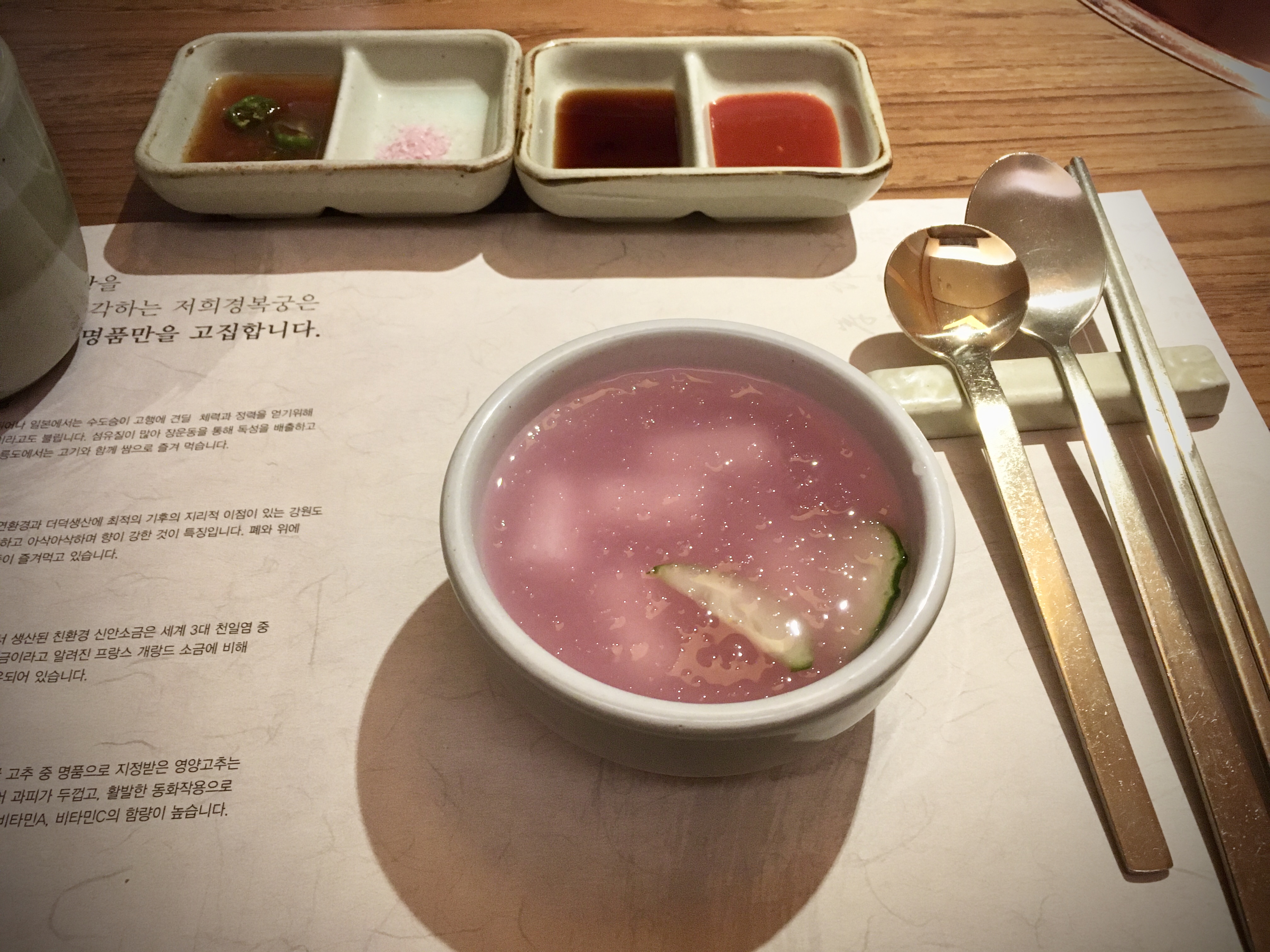 먼저, 시원한 국물김치랑 죽으로 속을 달래주고요.