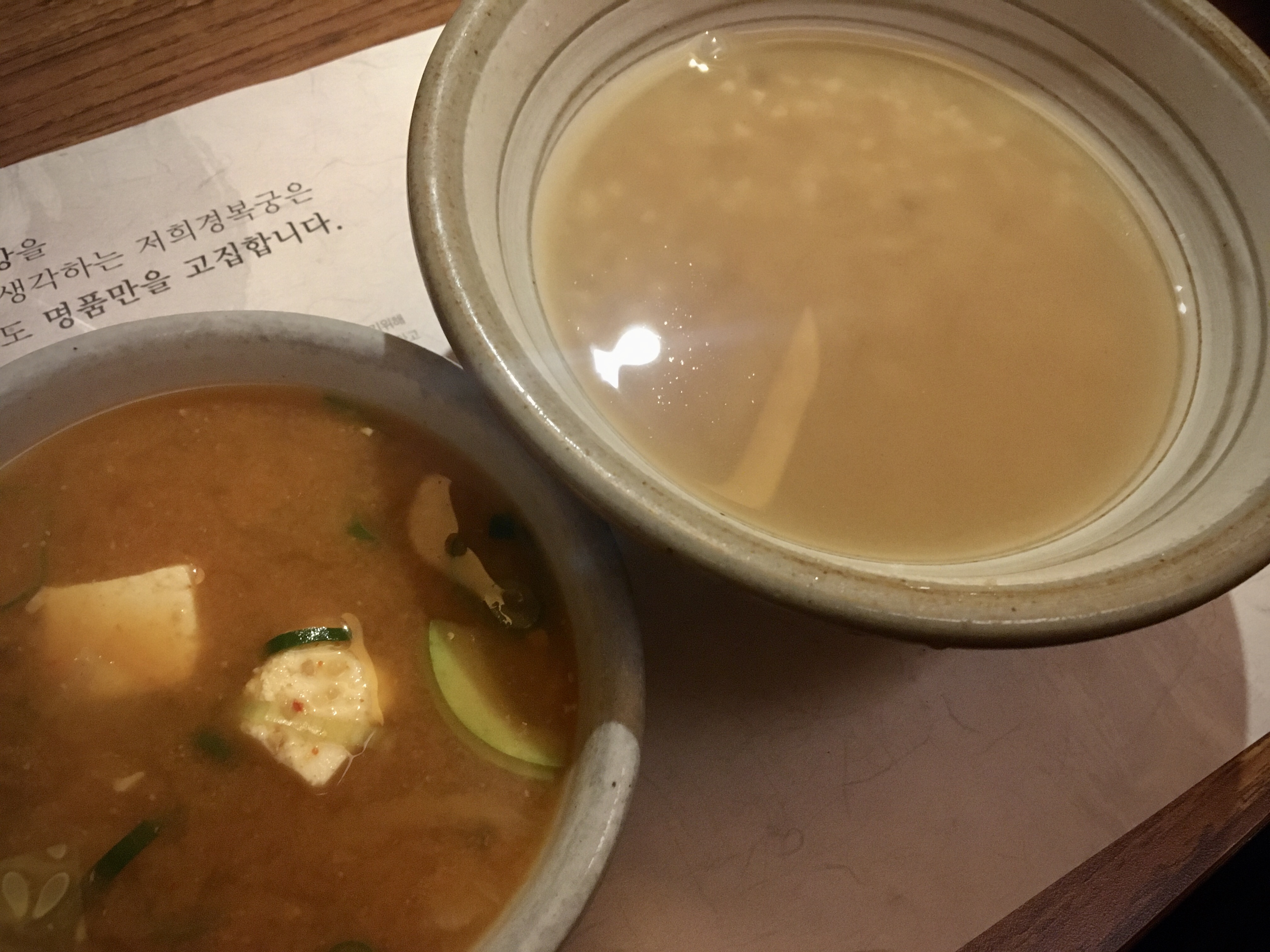 마무리는 심심하게 누룽지와 된장국으로 깔끔하게 마무리하였습니다.