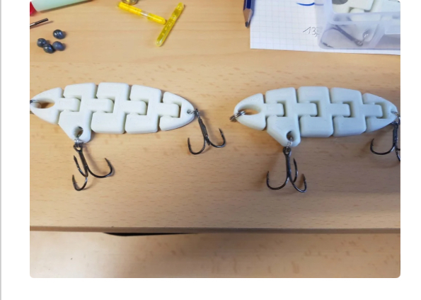 This is a remix of a brilliant design by JakeJake. Please check out his original design for more detailed instructions and videos. https://www.thingiverse.com/thing:941408 The hinges are improved for easier printing and durability. The ends of the lure tap