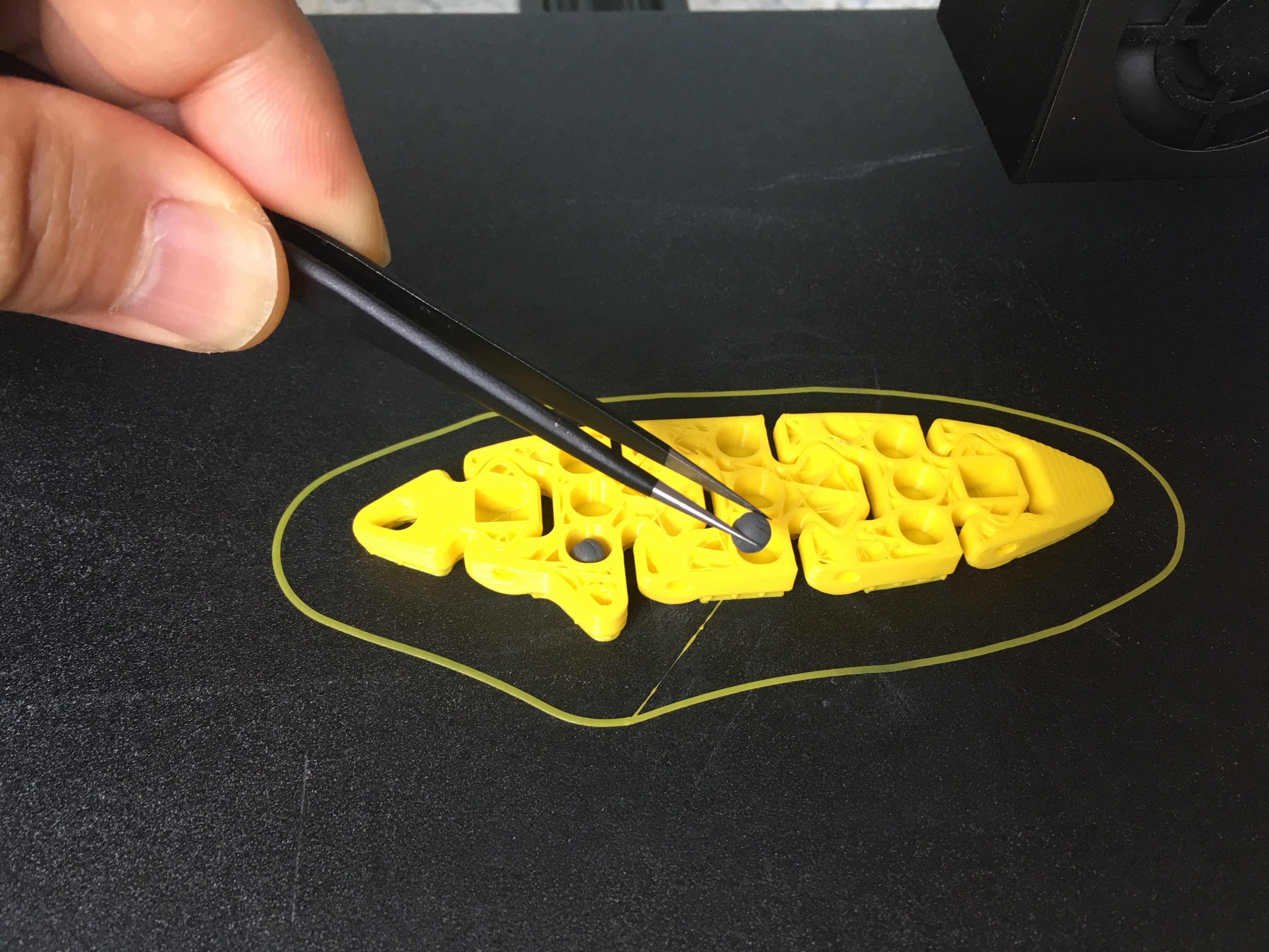 첫 출력물과 달리.. 꼬리에만 바늘이 달려 있고,