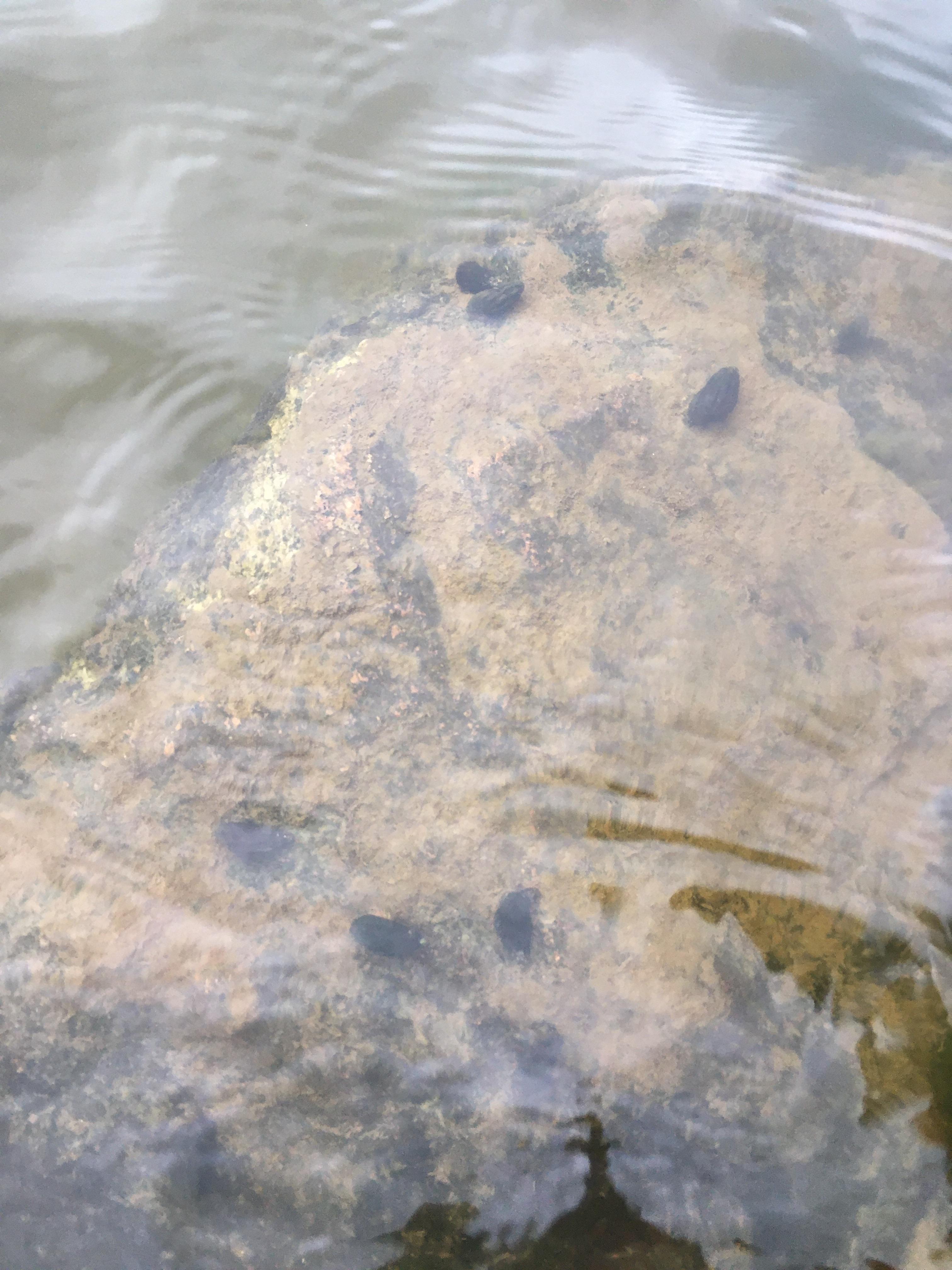 가만히 보니 돌마다 다슬기가 많이 붙어 있습니다.