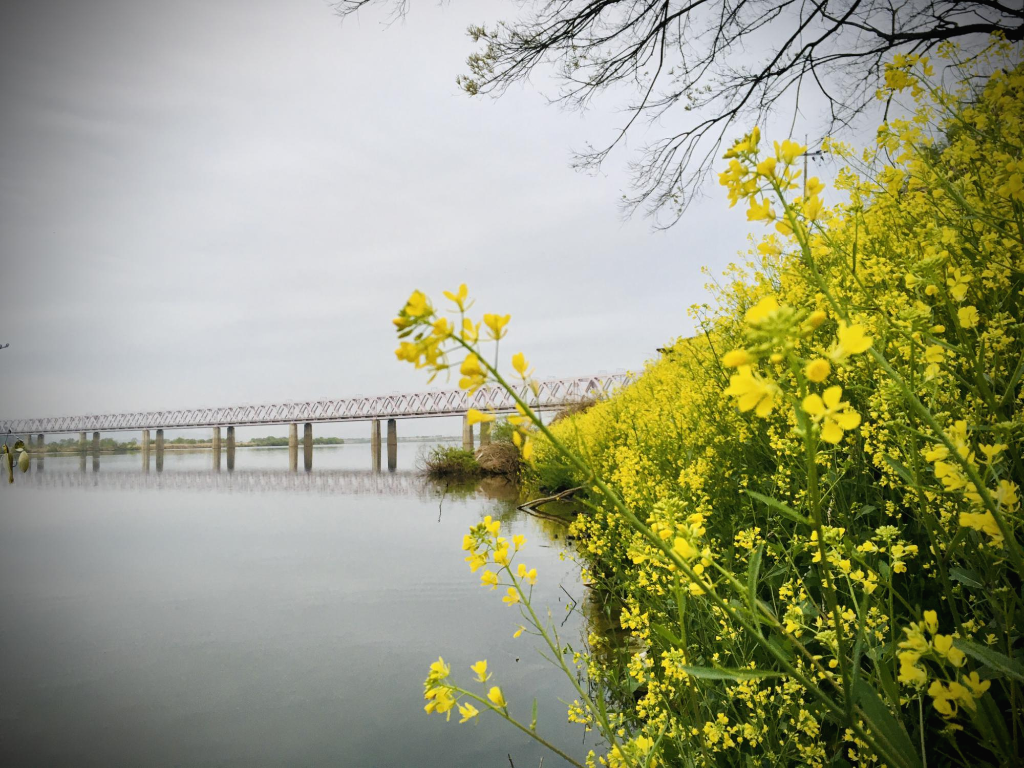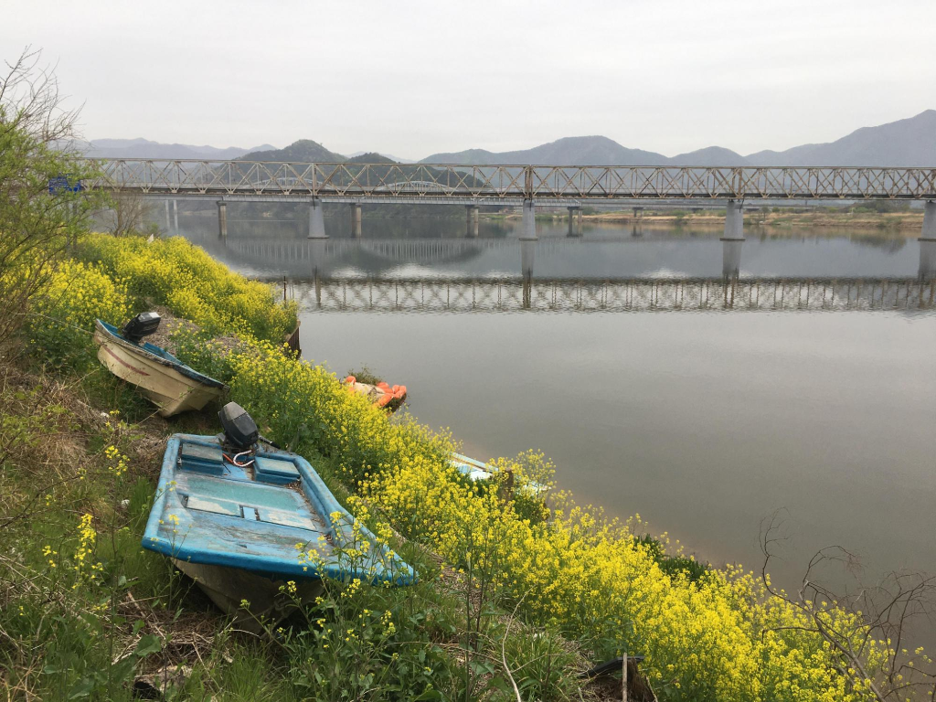 강변에는 봄을 알리듯 유채꽃이 만발해 있습니다.