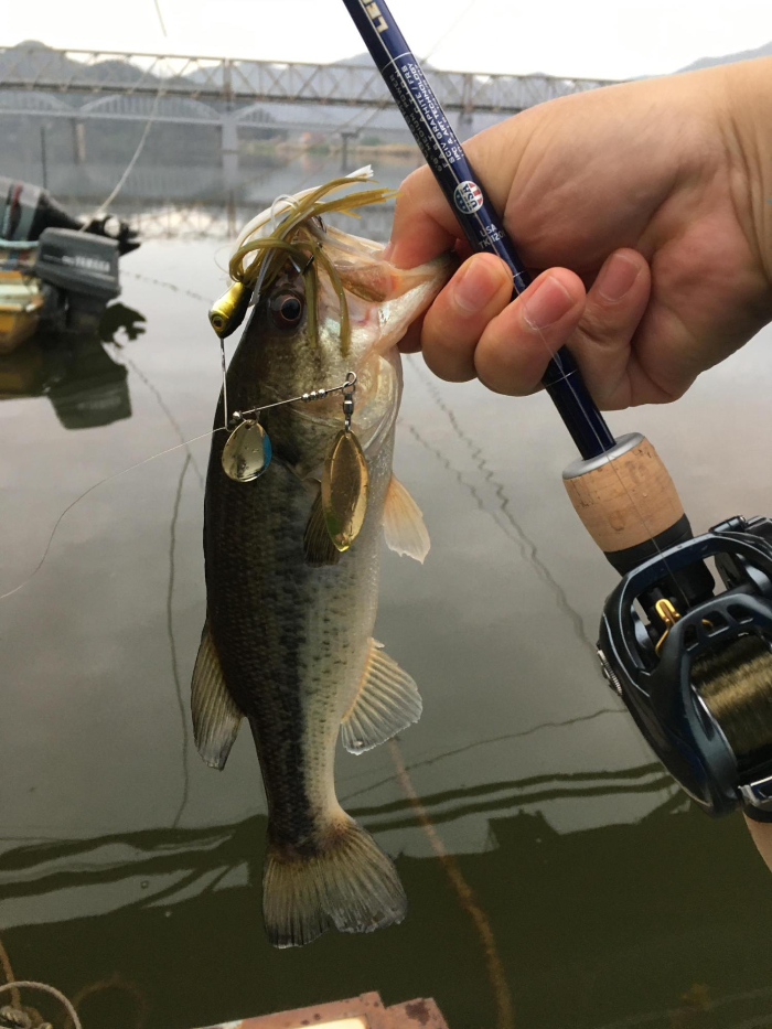 스피너베이트로 탐색하니 짜치 한마리가 까꿍!~하고 얼굴을 또 보여주었습니다.