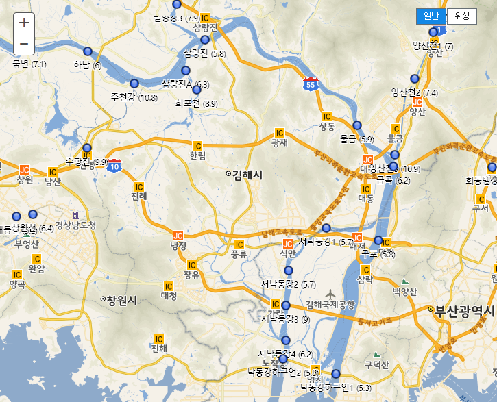 그 다음으로 수온이 또 높은 곳은 김해 진영 "주천강" 입니다.