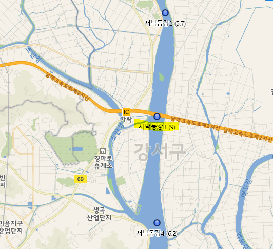 첫 번째 눈에 띄는 곳이 양산천 하류 입니다.