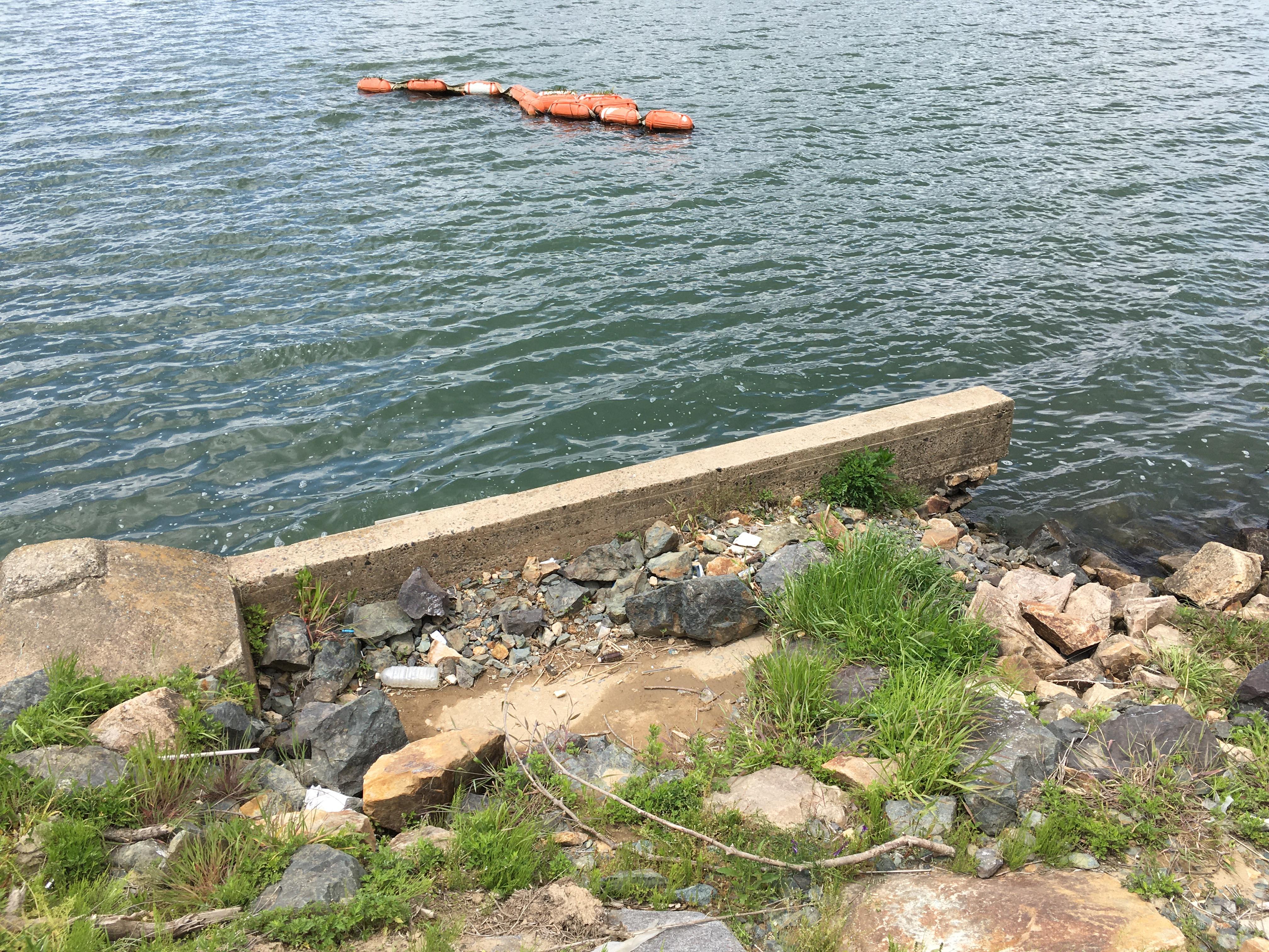 나오다가 발견한 콘크리트 옹벽 구조물과 부표..