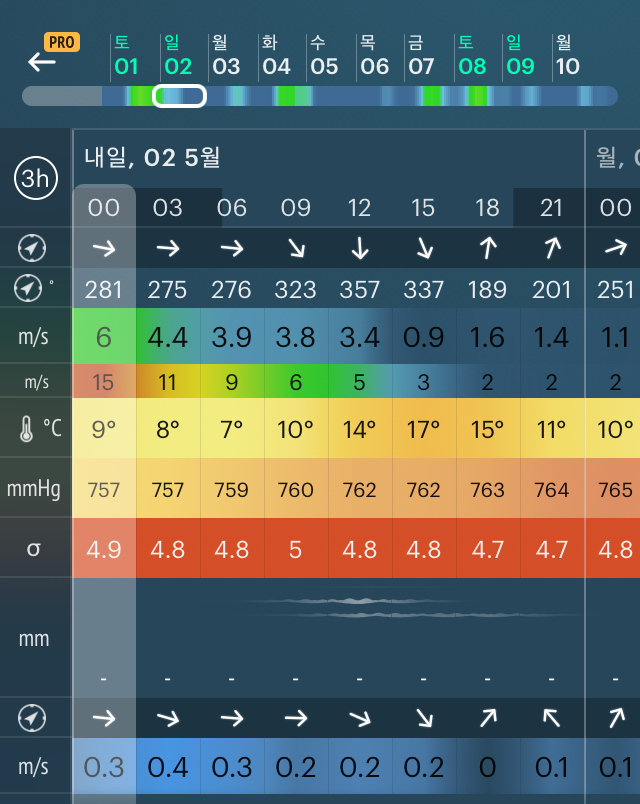 평균풍속은 3~4m/s 로 할만한데, 순간돌풍이 높아 북서풍을 피할 수 있는 곳으로 포인트를 선택했습니다.