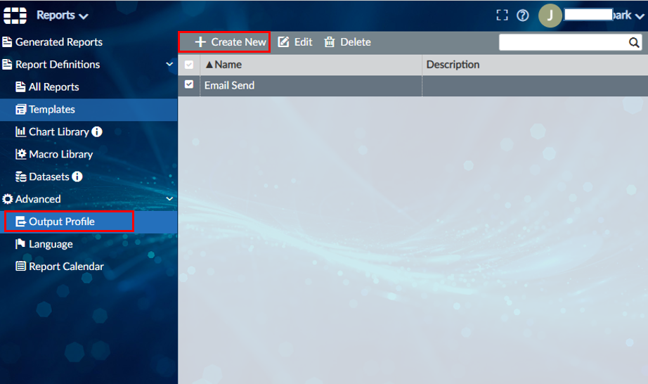 Reports > Advanced > Output Profile