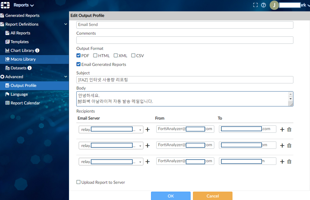Fortinet 방화벽 아날라이져 (Forti Analyzer) 를 통한 로그 분석 기능 중