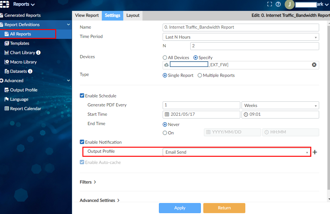 생성된 Profile 을 이제 Reports 에 적용해 주셔야 합니다.