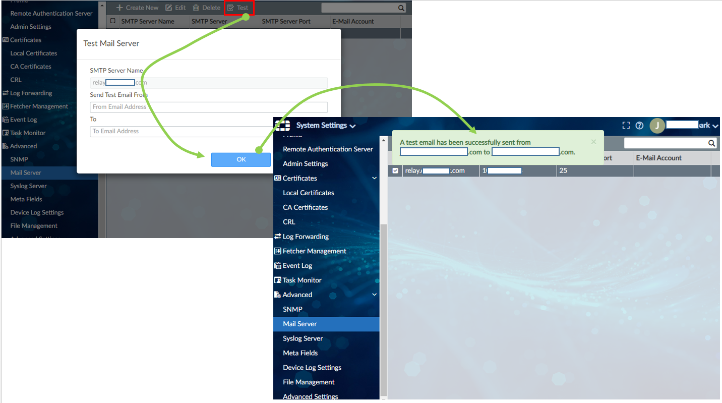 - Send Test Email From : 보내는 메일주소