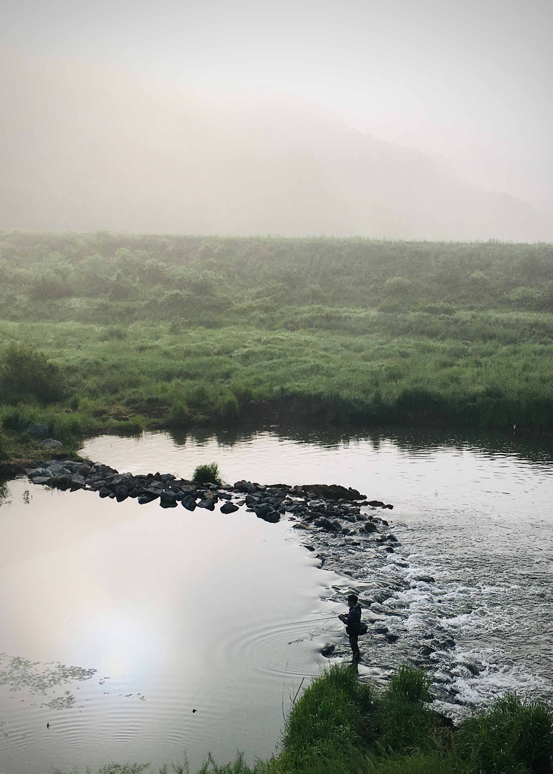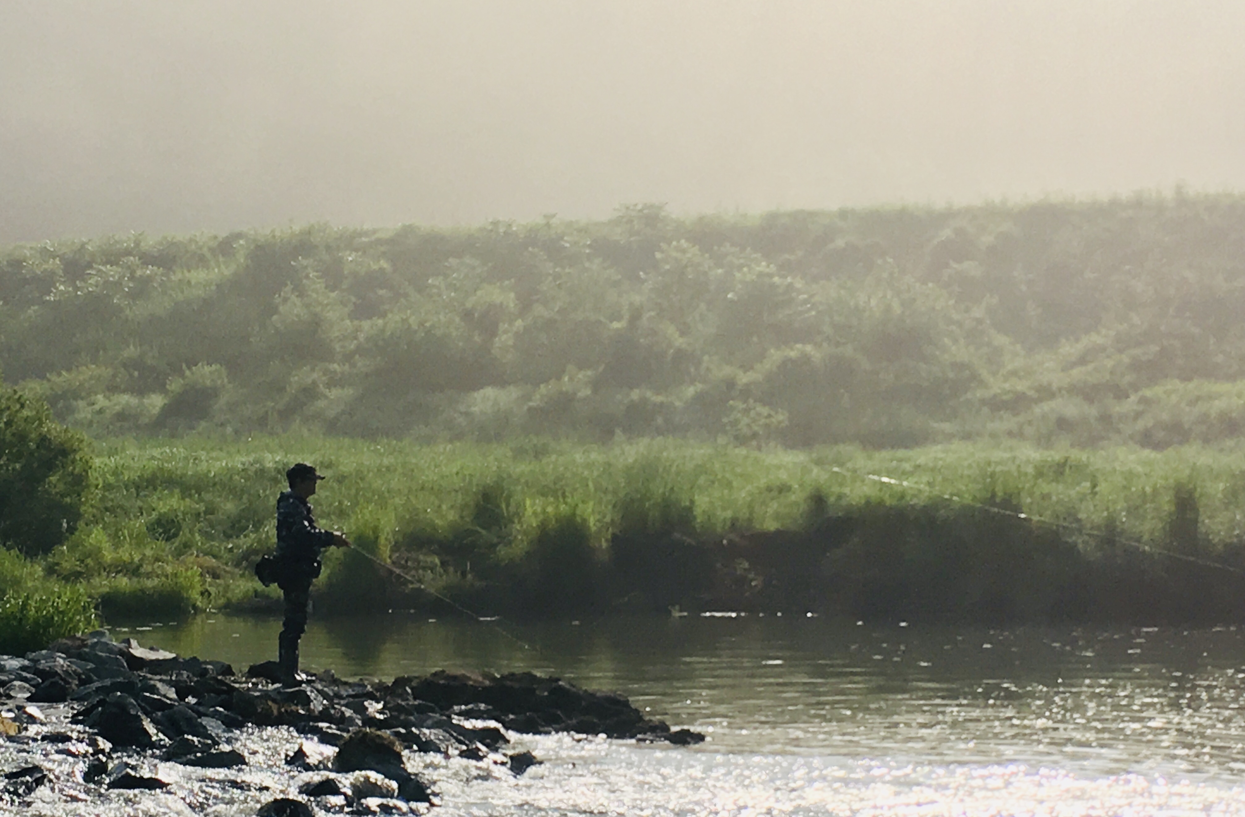 해가 서서히 비추면서 안개가 걷히고 저 앞에서 캐스팅하는 싸앵님의 모습이 한폭의 그림 같습니다.