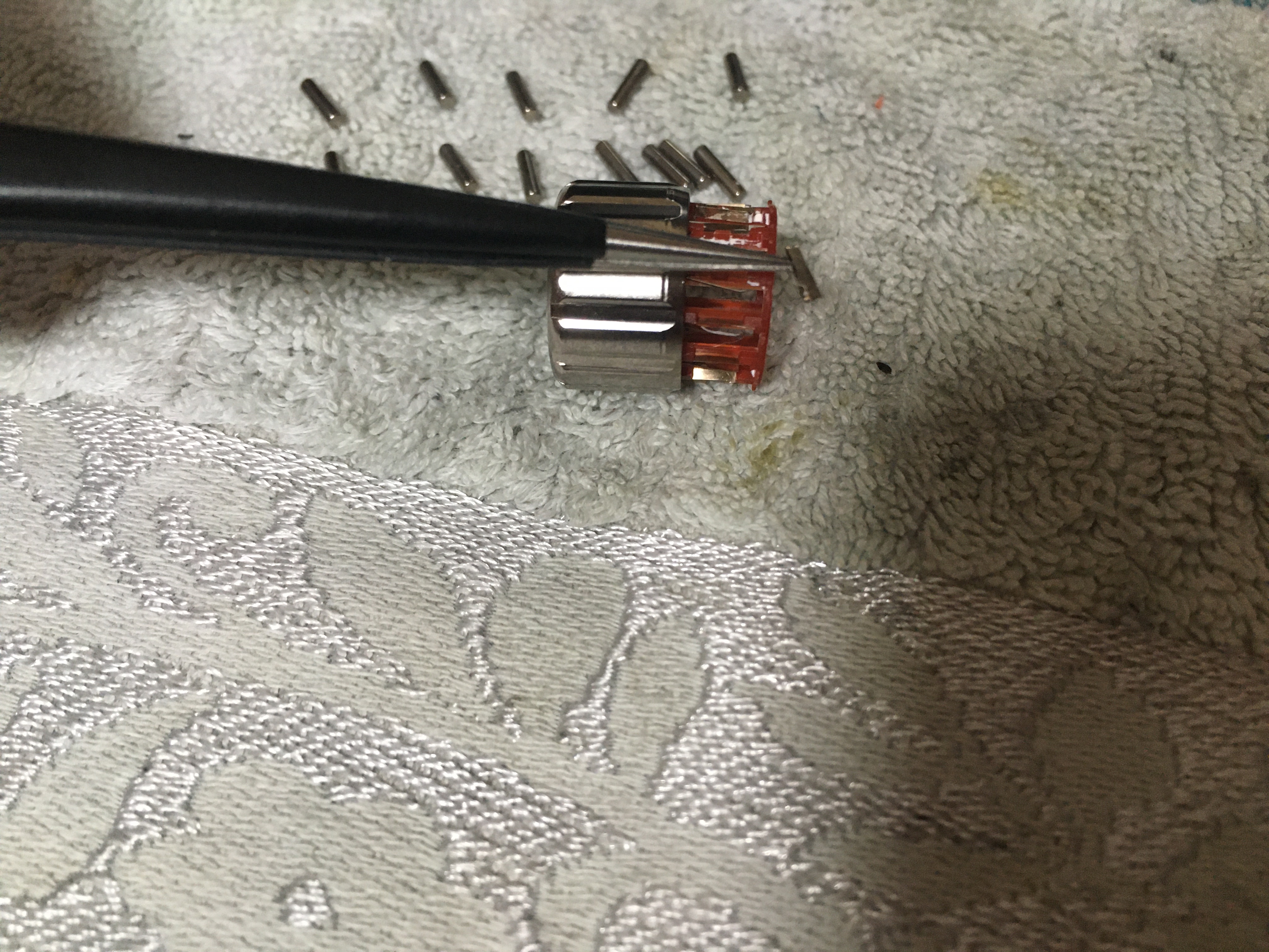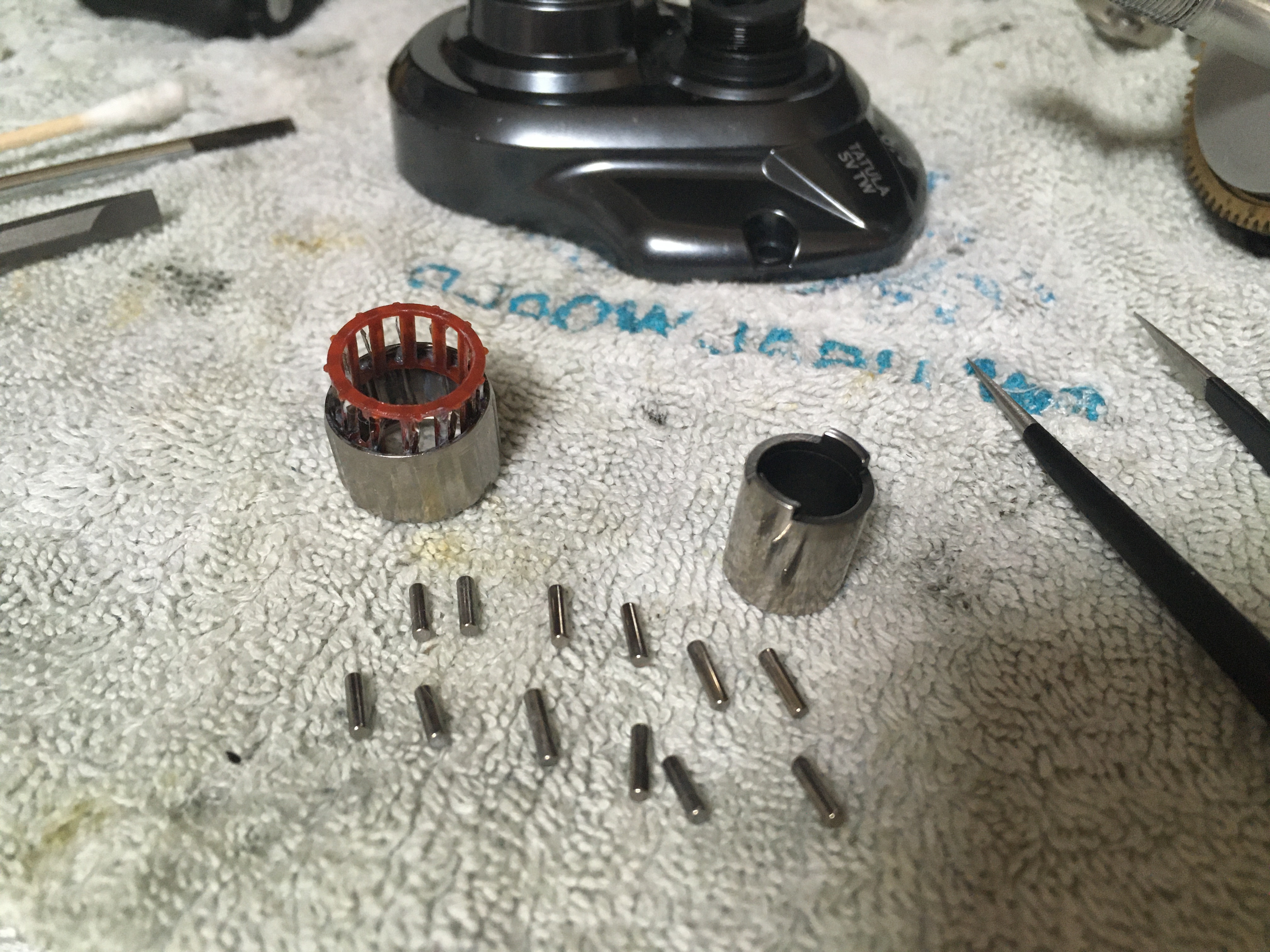 원웨이 베어링의 빨간 내륜을 살살 끄집어 내어 12개의 샤프트를 모두 꺼냈습니다.