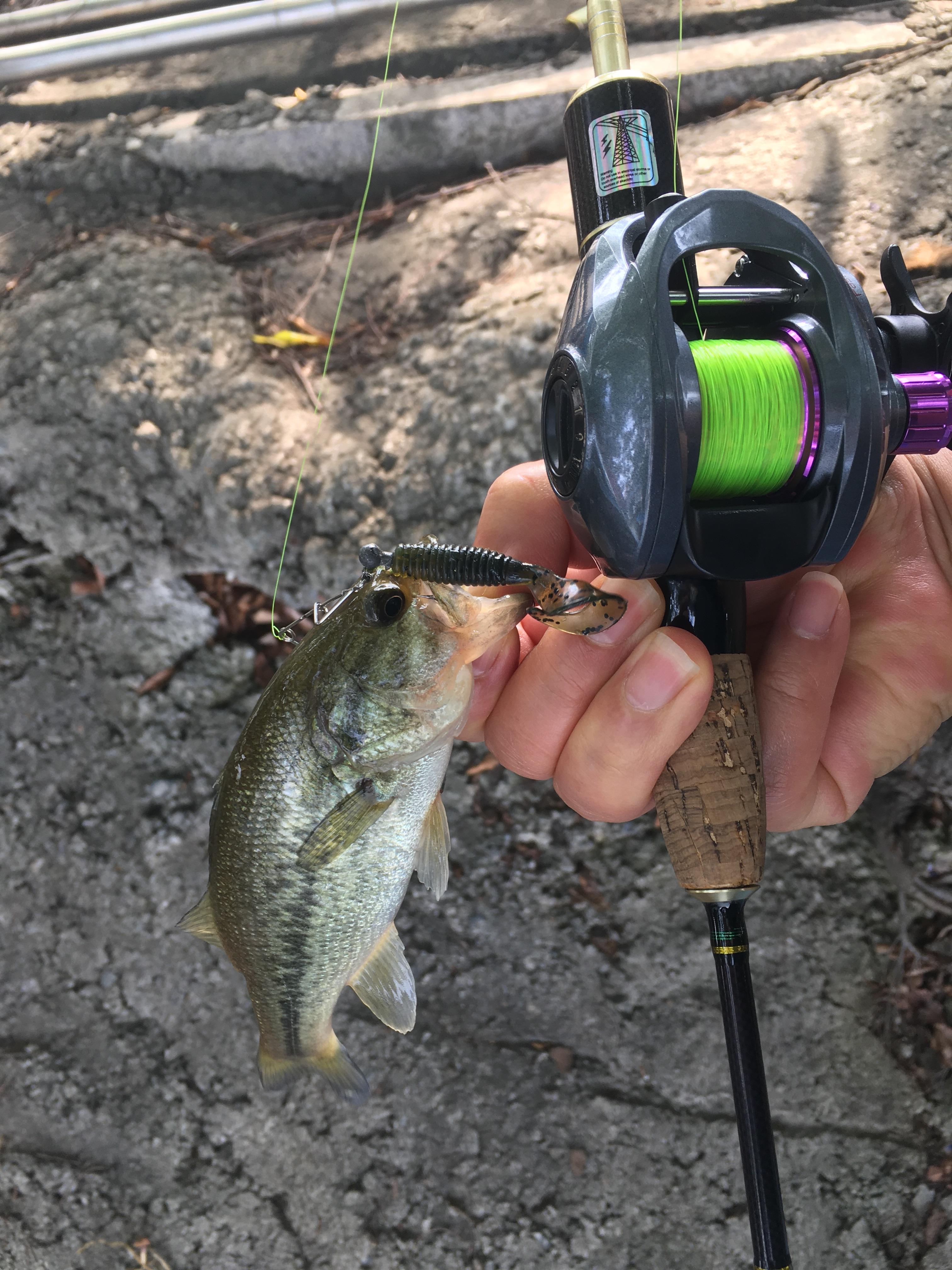 UL대 로드 하나 꺼내서 지그스피너에 2인치 그럽웜을 발앞 가까이 몇 번 던져 보았습니다.