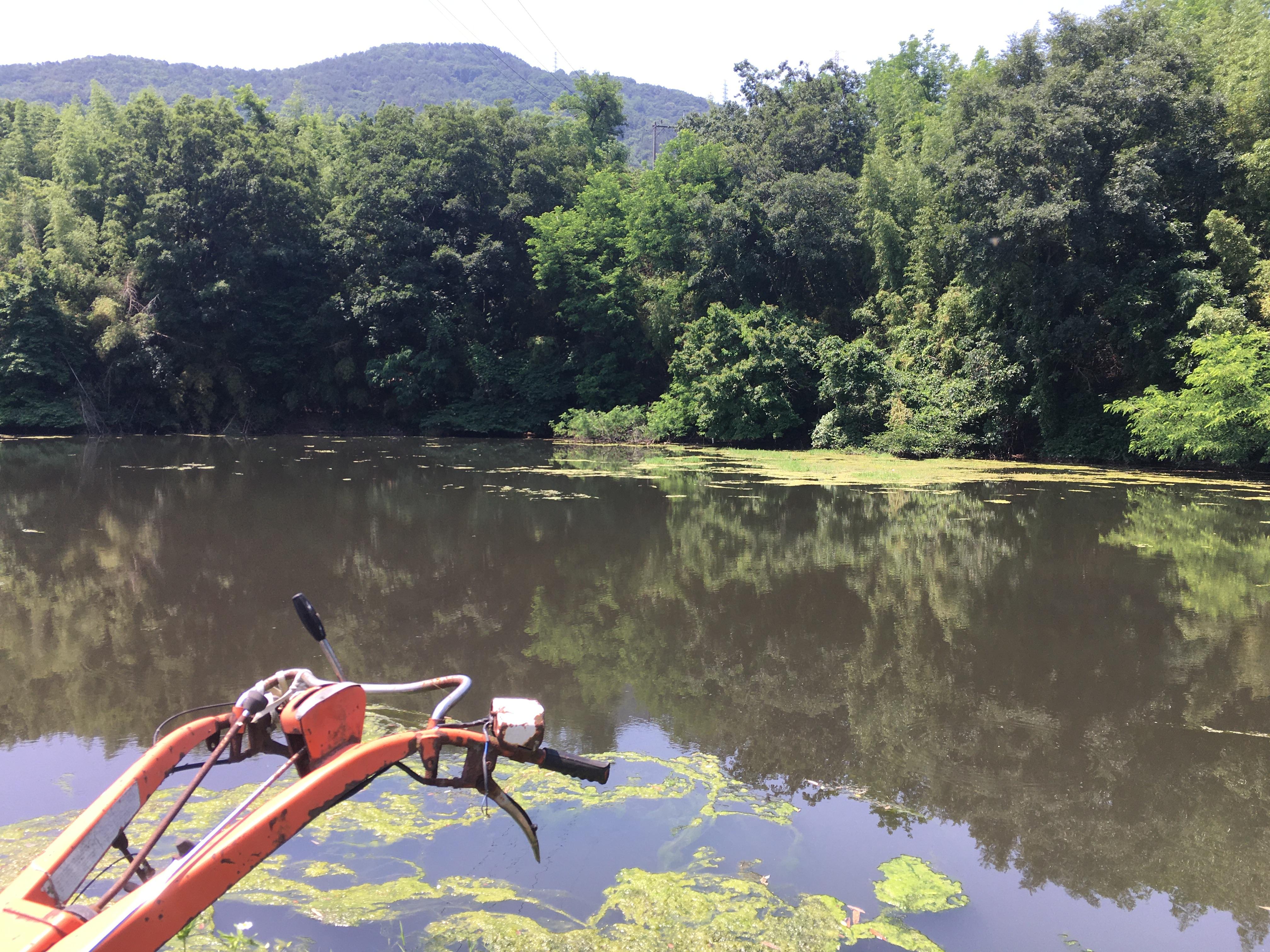 수초 언저리에서 깔짝깔짝 액션을 주자 바이트가 들어왔습니다.