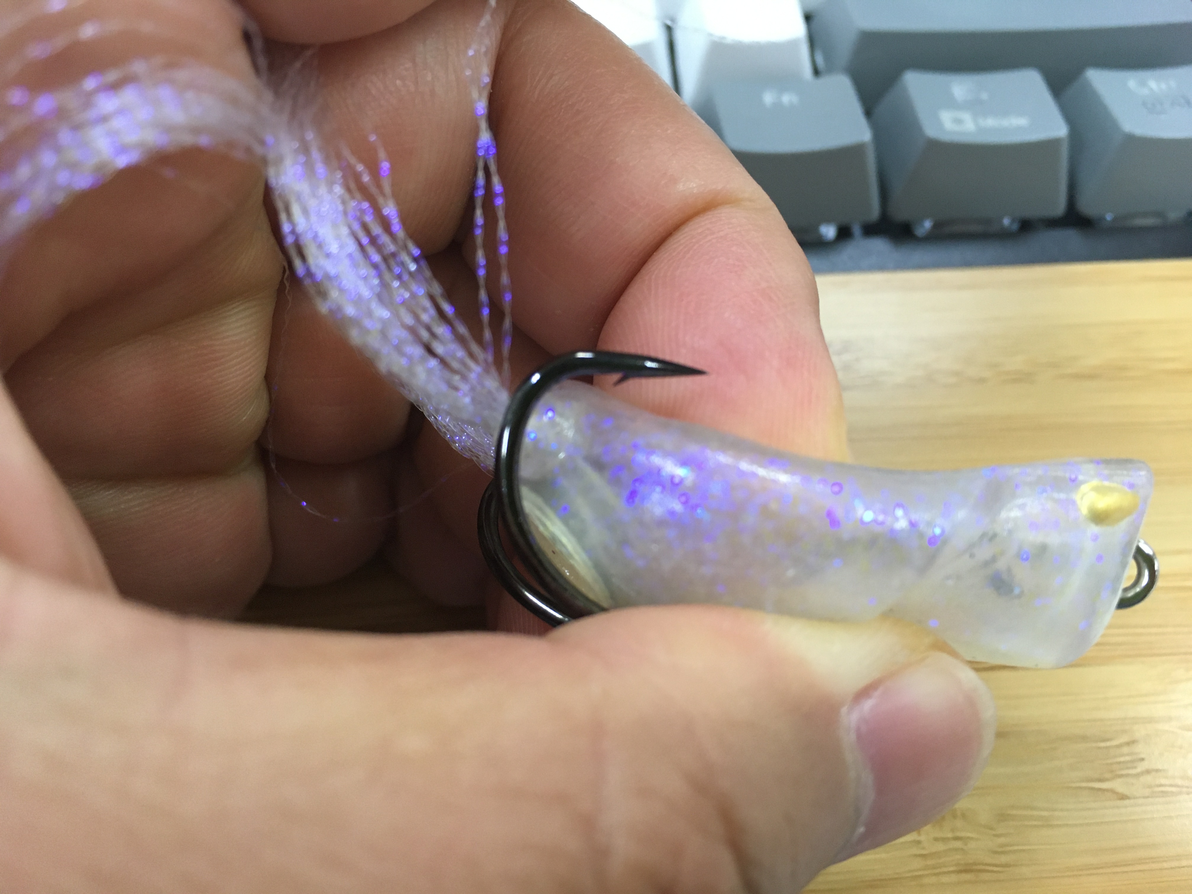 몸통의 볼록 튀어나온 부분 뒤 쪽으로 훅 포인트가 위치하기 때문에,