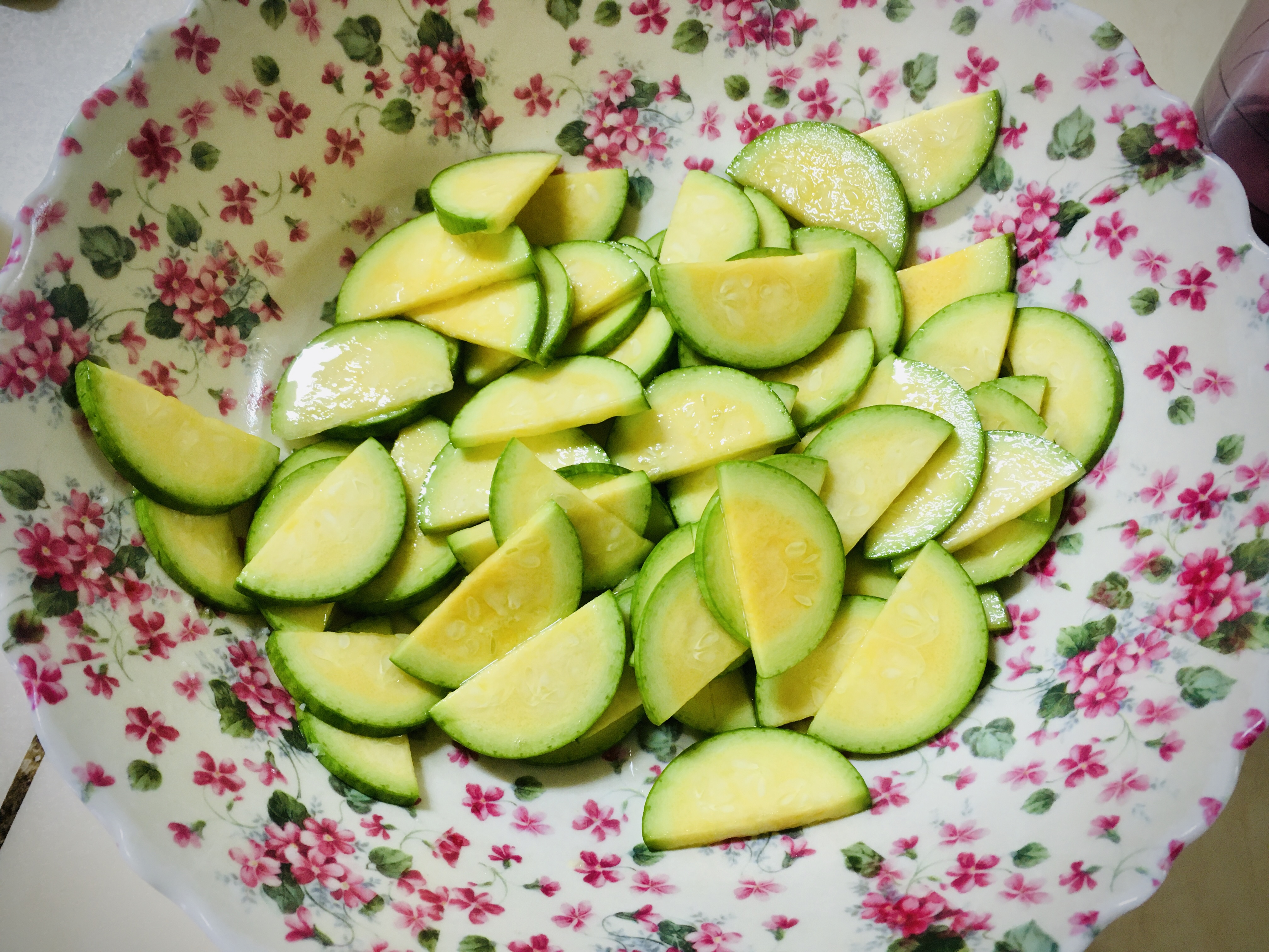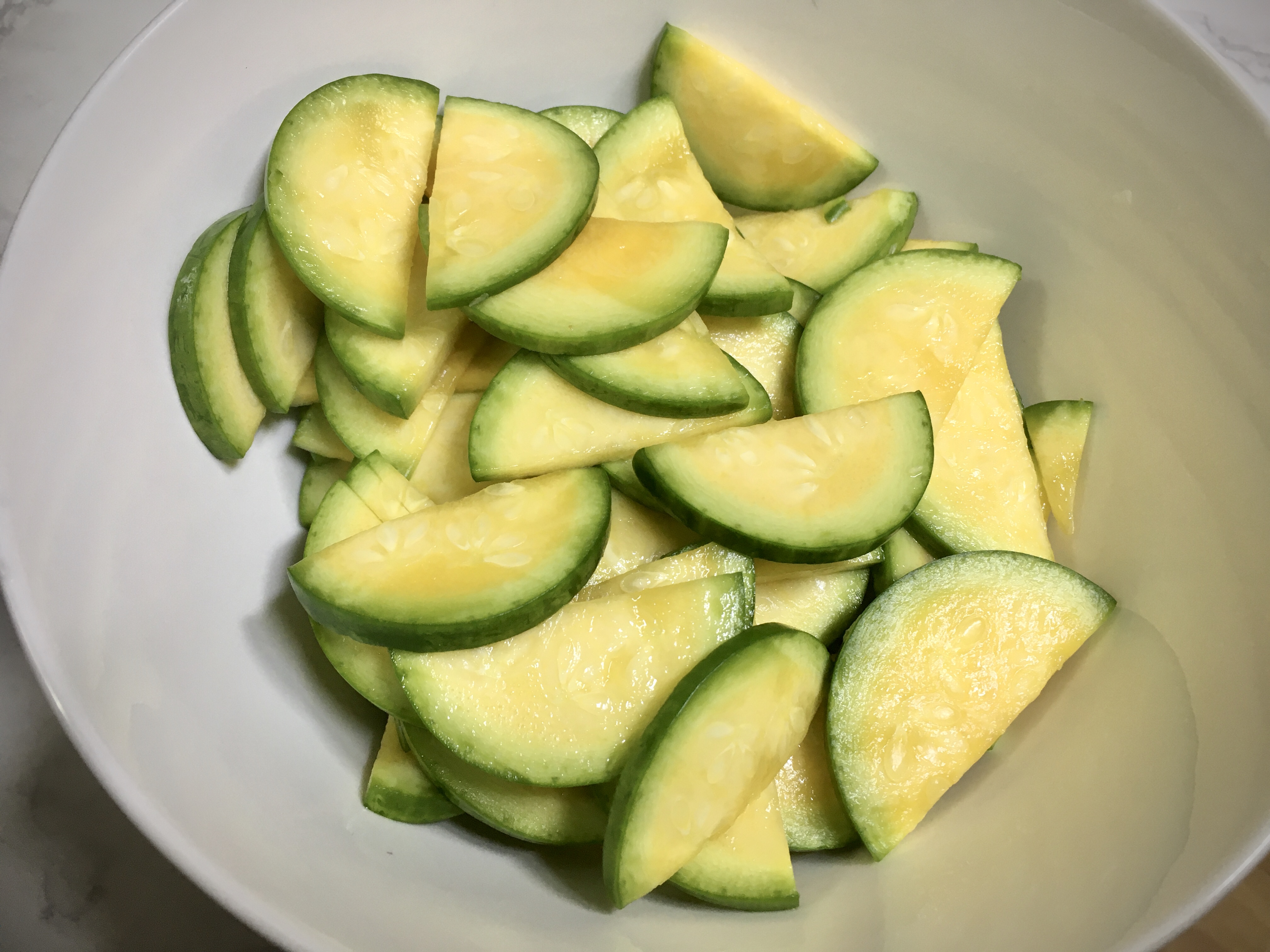 1. 먼저 애호박을 씻어서 반달모양으로 썰어서,