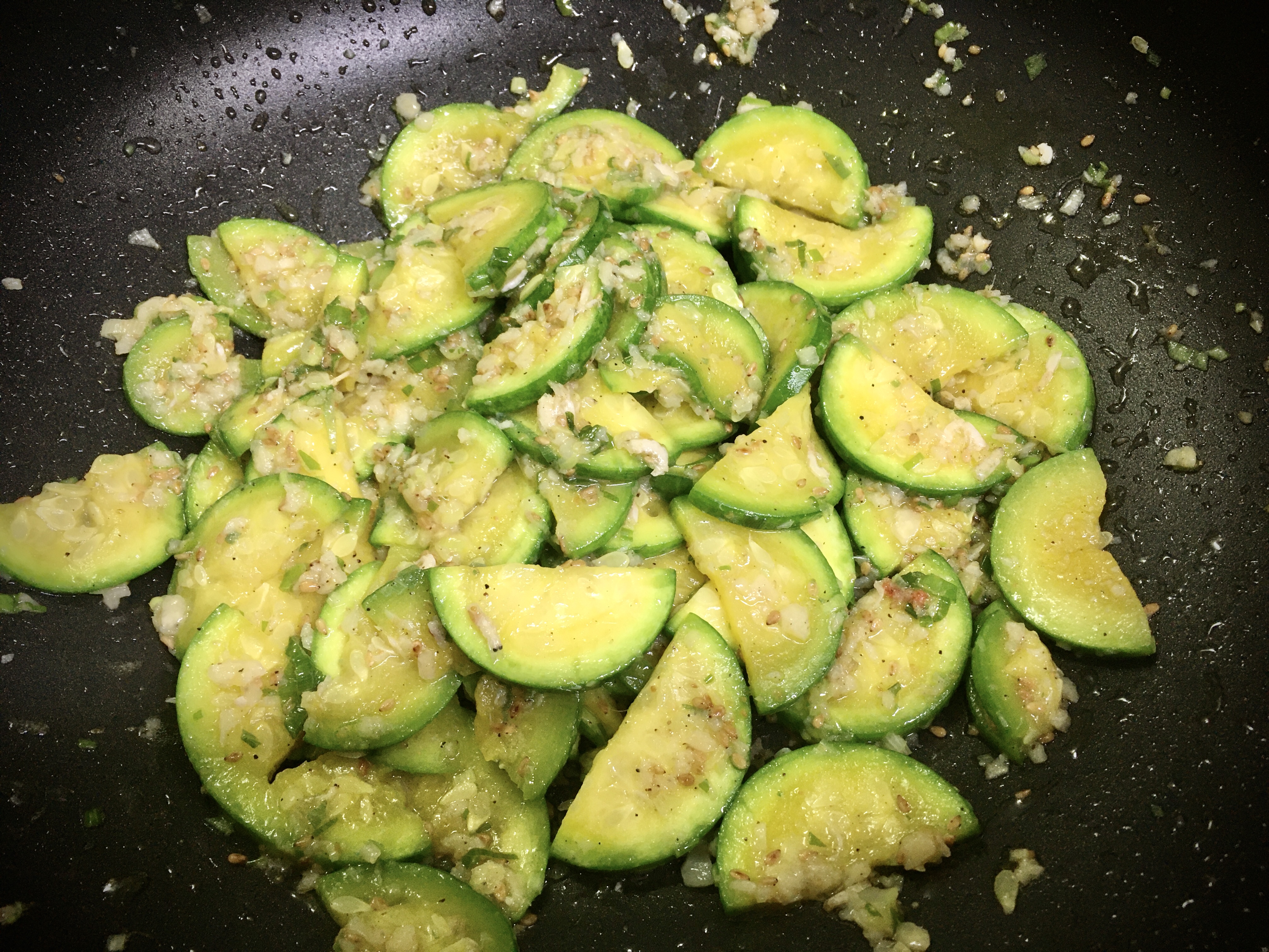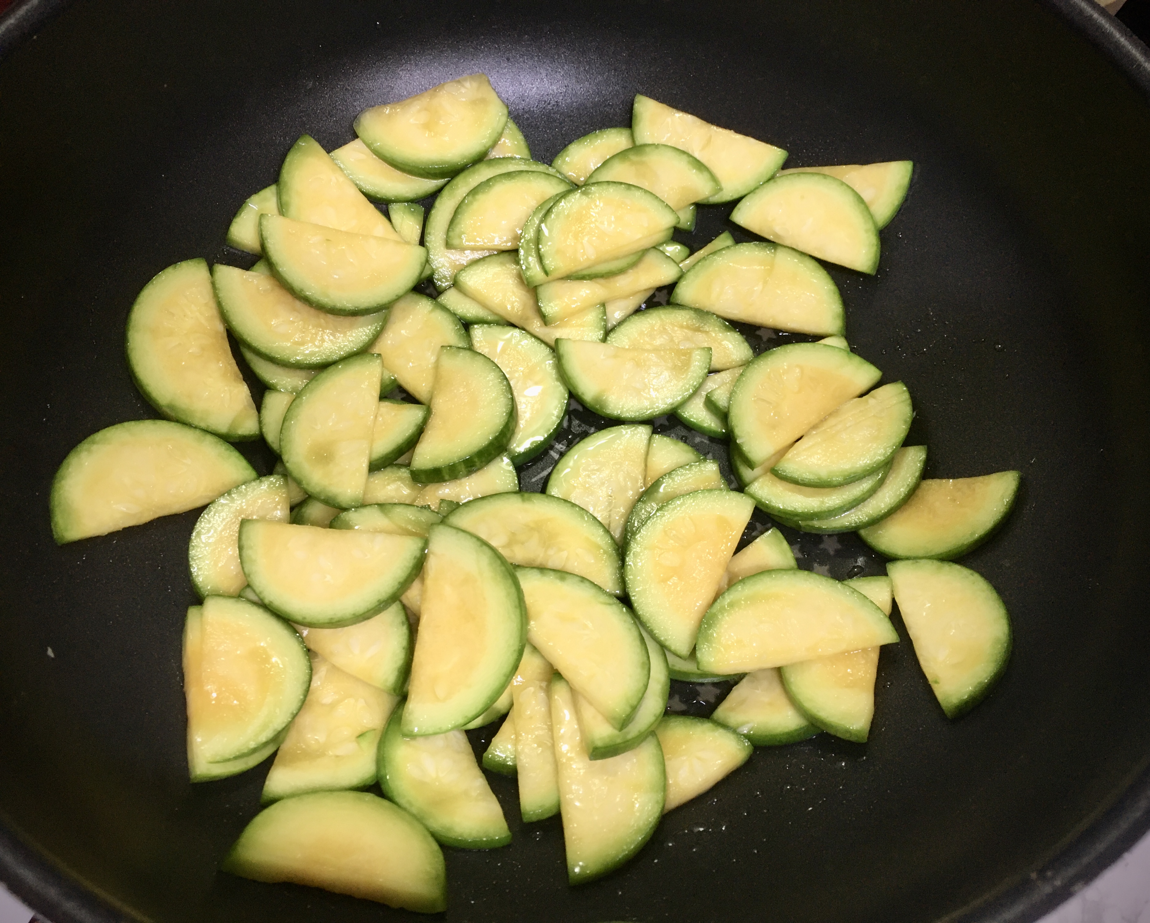 4. 팬에 식용유(1.5) 를 두르고, 애호박을 넣고 중약불에 볶아 주세요.