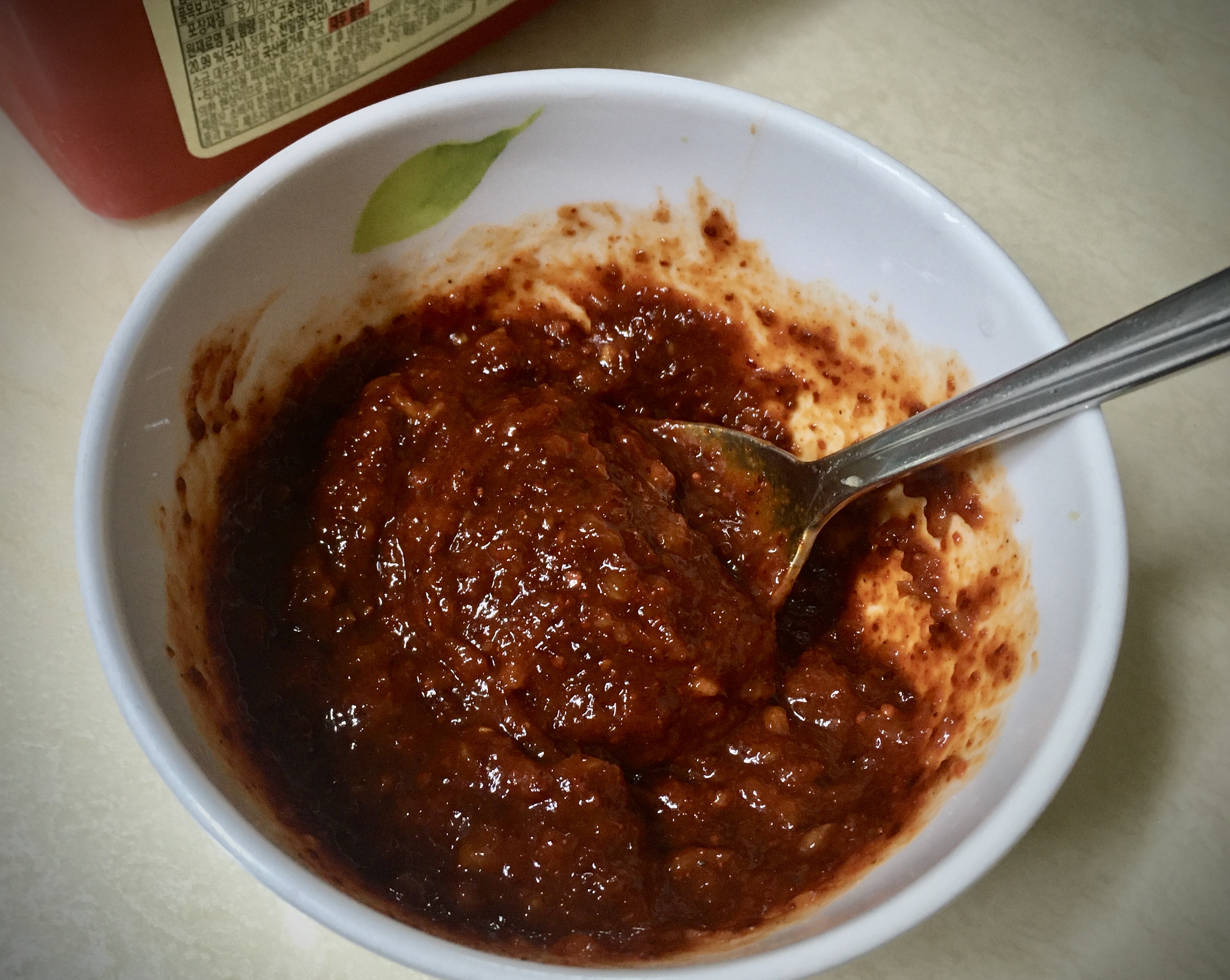 - 양념(숟가락계량) : 고추장(1), 고춧가루(2), 다진마늘(1), 간장(1), 케첩(2), 후추(톡톡)