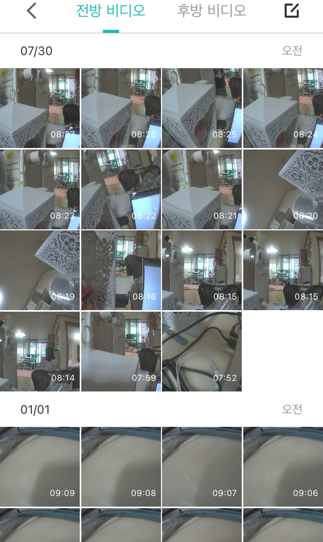 일반 녹화 영상, 이벤트영상, 주차감지영상, 캡쳐이미지 등 각각 별도의 폴더에 저장이 되며,