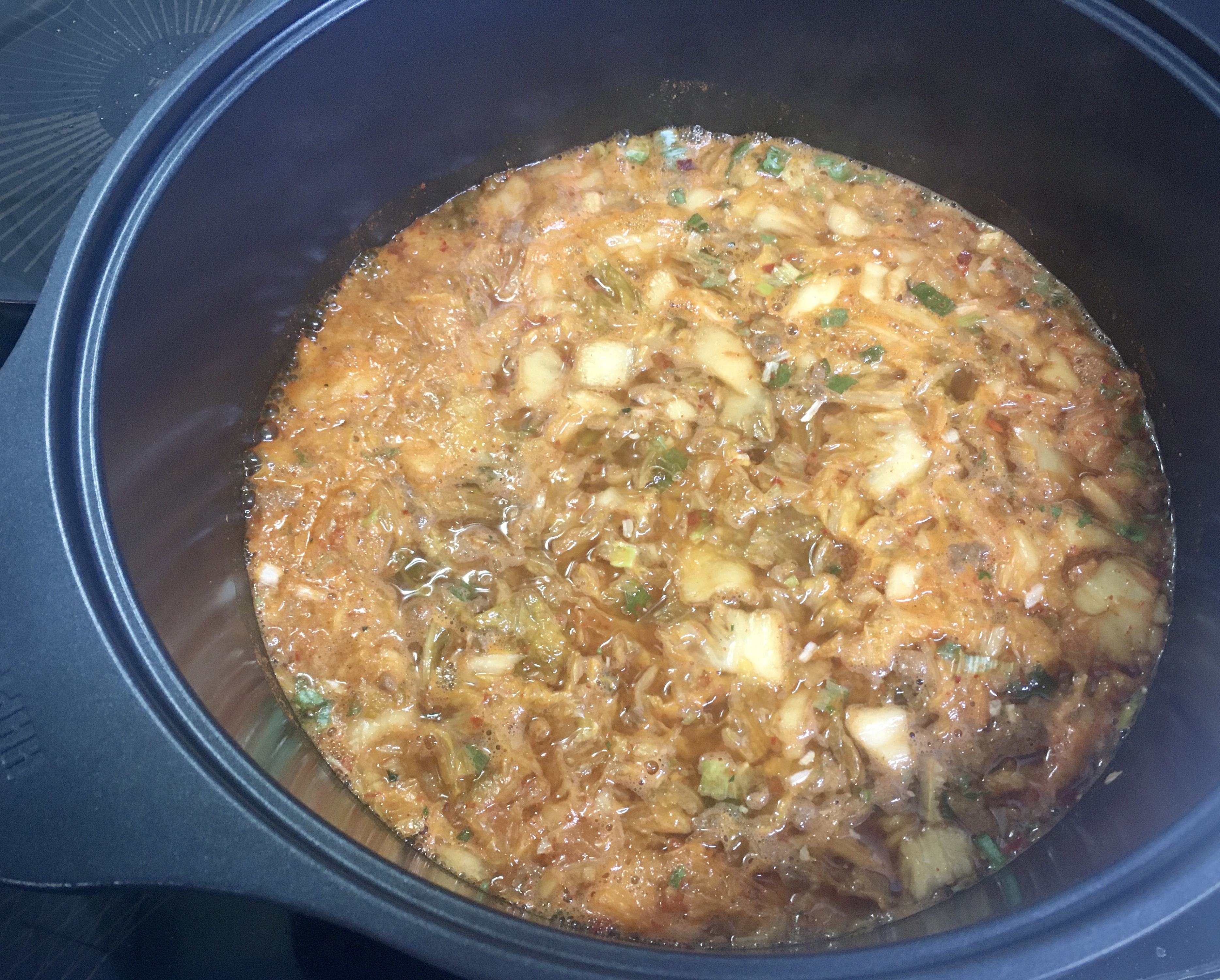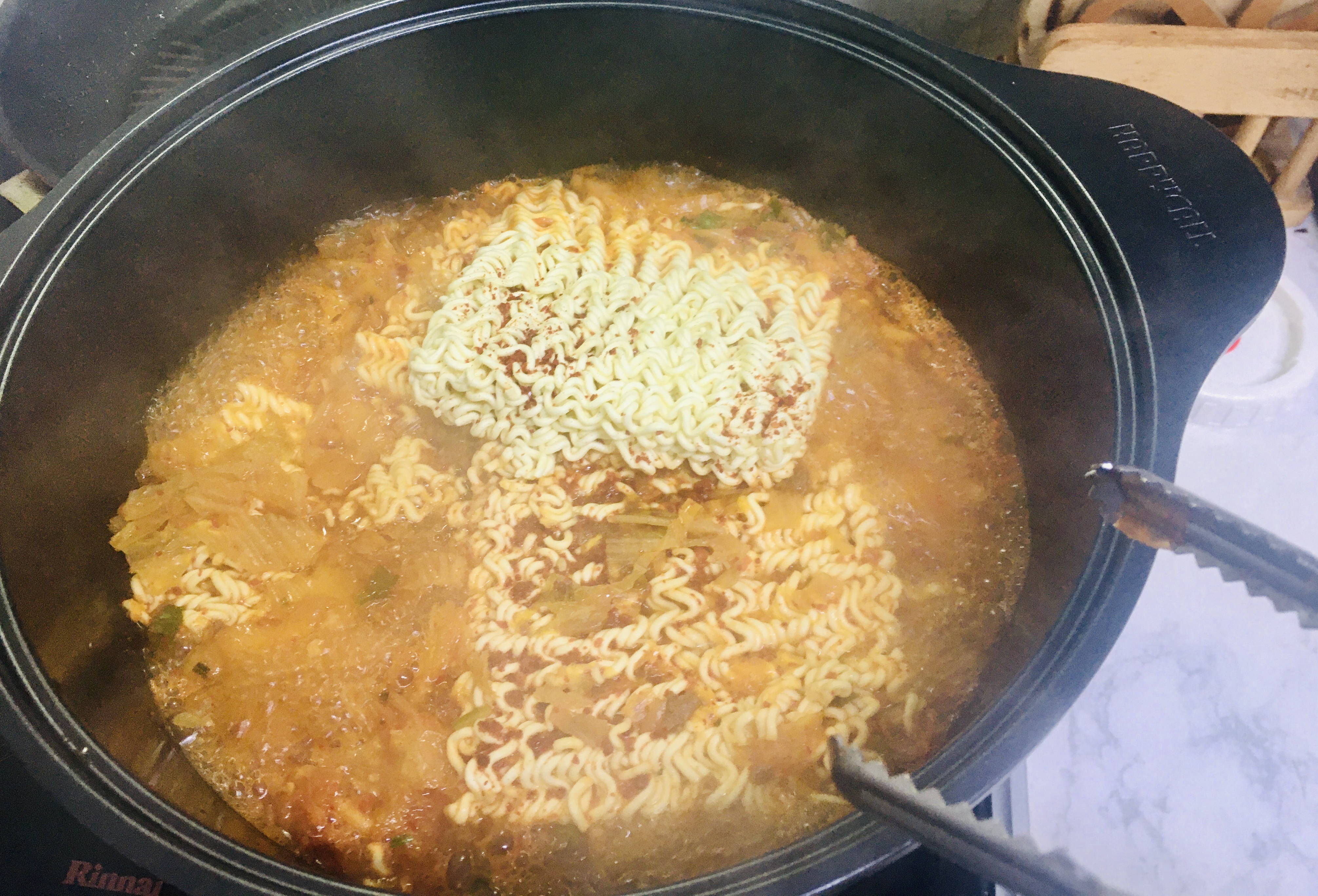 5. 물이 끓기 시작하면 썰어 둔 김치를 투하해 주세요.