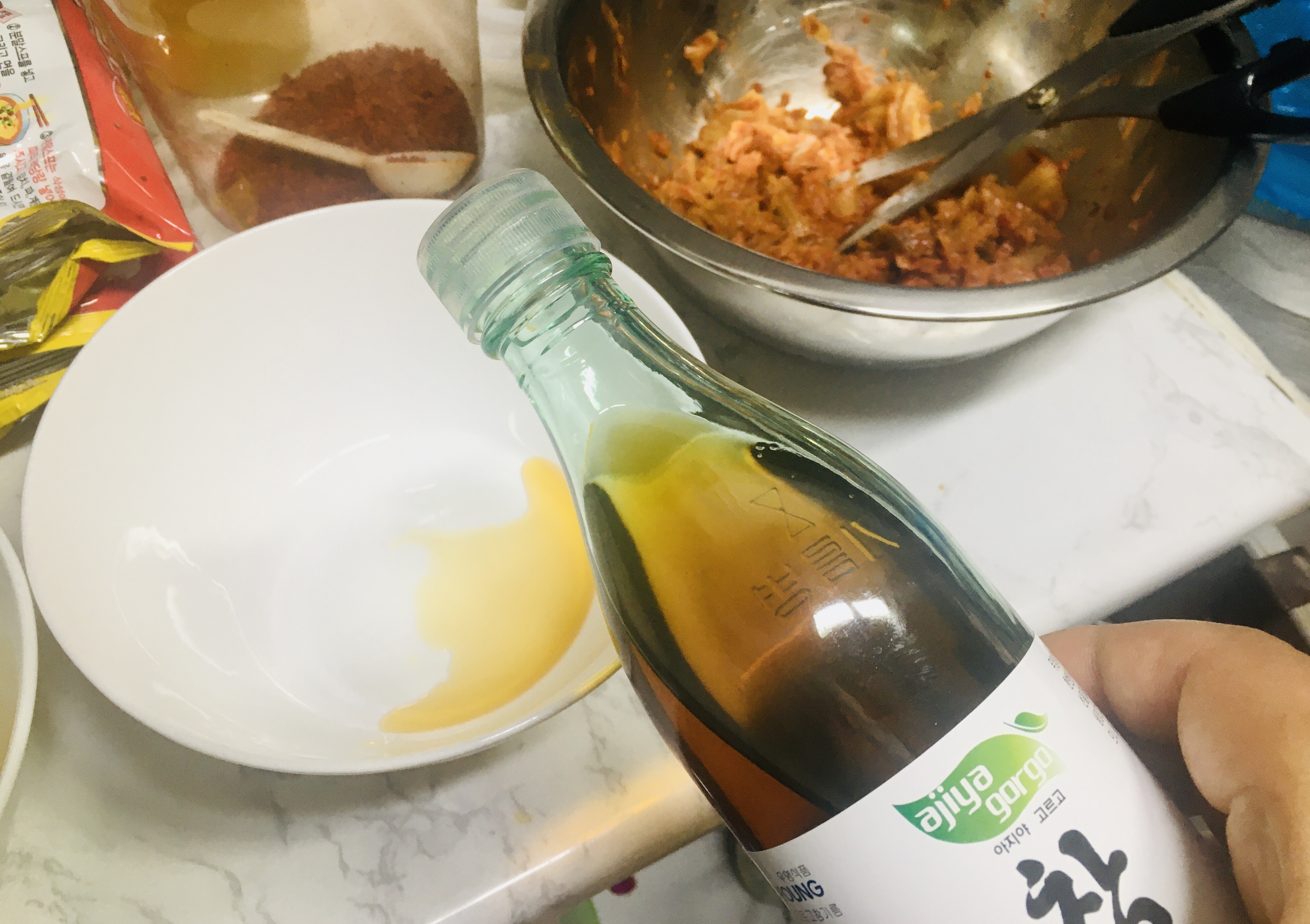 김치라면의 포인트는 참기름과 깨소금입니다.