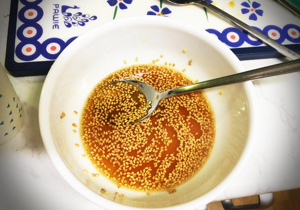 - 간장(0.5) + 설탕(1) + 맛술(2) + 참기름(1) + 참깨(0.3) 를 넣고 쉐킷쉐킷 섞어 줍니다.